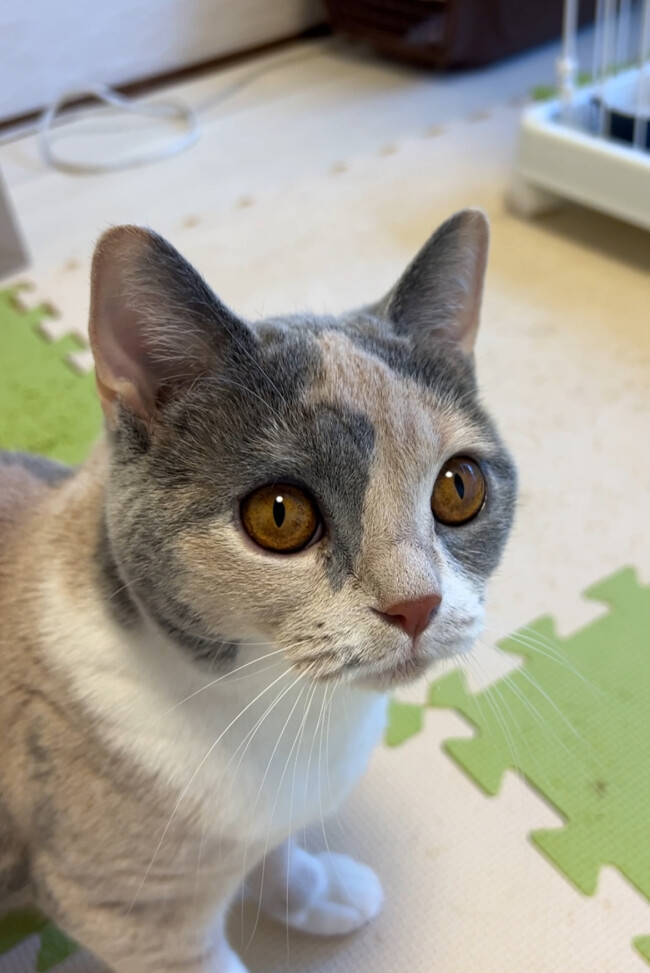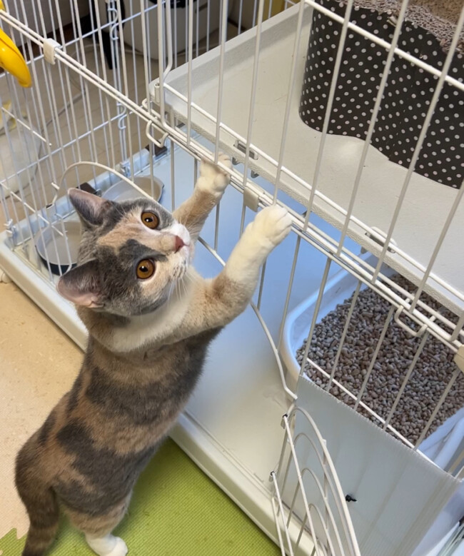 ハルちゃんはミルク姉ちゃんのケージが気になるようです😸