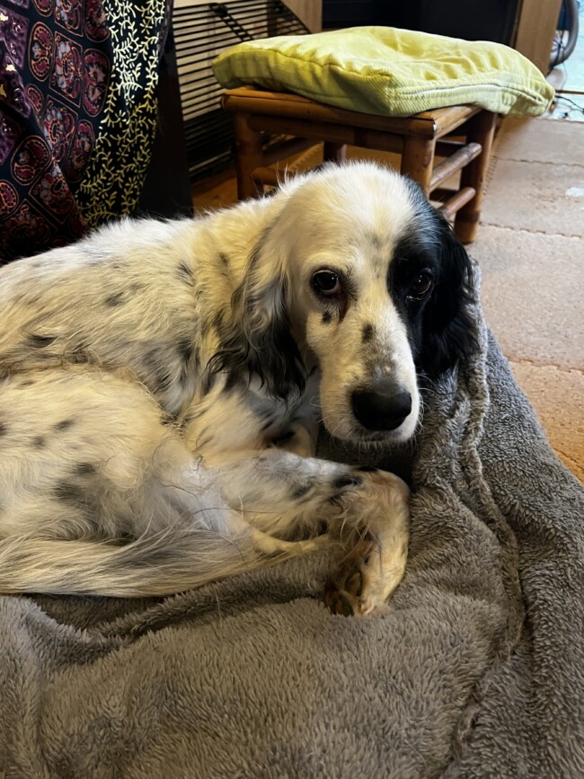 今回のお世話は箕面市にお住いのイングリッシュセッターのゆばちゃんですお久しぶりのゆばちゃんです🐕前回は2019年でしたので5年前になります。その間に同居犬のがんもちゃんは虹の橋に行ってしまっていました( ノД`)シクシク…とっても人懐っこいゆばちゃんは、シッターが横に座ると体を預けて甘えてくれます💓ナデナデをやめると、もっと!と手をちょんちょんしてくれます 🙂上目づかいもたまりませんね~💕ゆばちゃん、また会える日を楽しみにしています