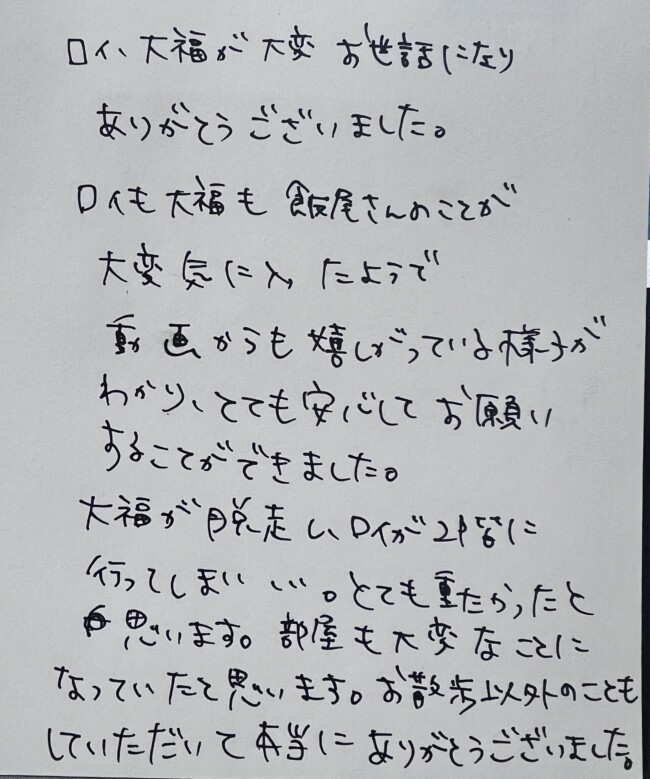 ミニチュアダックスフンドの大福くんとロイくんのご家族様からアンケートのハガキが届きましたありがとうございます今後ともよろしくお願いいたします
