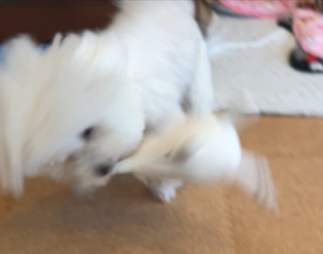 わたぼうくんおもちゃを渡すとブンブン振り回します🐶わたぼうくん目が回りそう(笑)