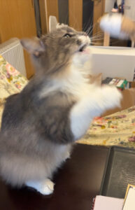 今回のお世話は吹田市にお住いのノルウェージャンフォレストキャットのギガくんです何度もご利用いただいている猫ちゃんです😻ギガくん 8歳の男の子です。2年ぶりのご利用です😻その時は同居猫の茶茶ちゃんがいたのですが2年の間に虹の橋に行ってしまいました(´;ω;`)ギガくん、変わらず元気でいてくれて嬉しいです 🙂遊ぶのも大好きです💕楽しそうですね~😻また会える日を楽しみにしております