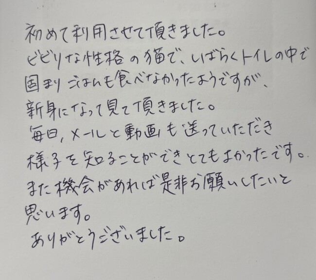 猫のメイちゃんのご家族様からアンケートのハガキが届きましたありがとうございます今後ともよろしくお願いいたします