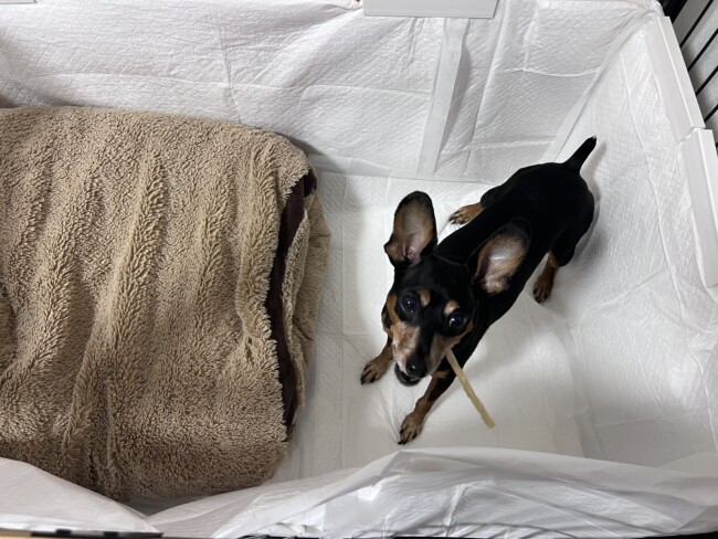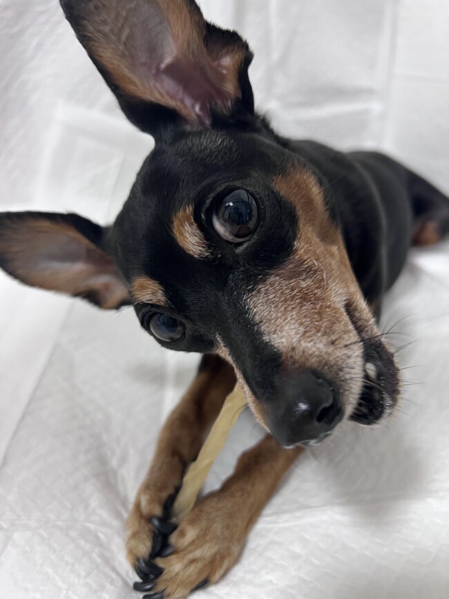 今回のお世話は箕面市にお住いのミニチュアピンシャーのチョコくんです