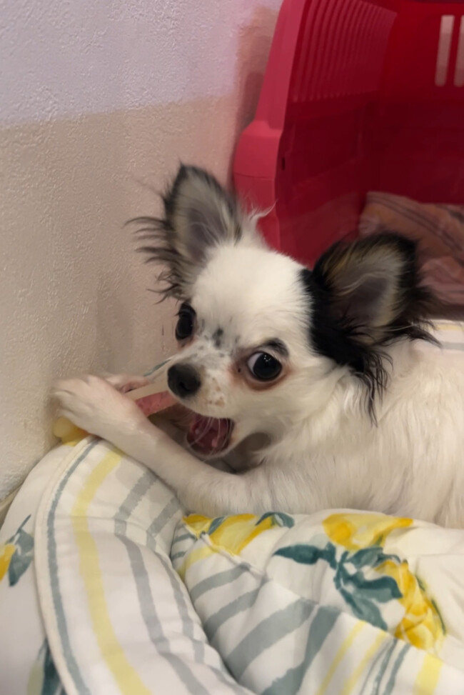 今回のお世話は箕面市にお住いのチワワのぱんだちゃんです何度かご利用いただいておりますが、ご紹介は初めてです🐶ぱんだちゃん、初めましてはまだ6か月でした 🙂食べることがとっても好きなぱんだちゃんは早食い防止のためにノーズワークを使ってご飯を食べますおやつも大好き💓おもちゃも大好き💓💓はみがきガムも大好き💓💓💓何もかもかわいいぱんだちゃんでした 🙂