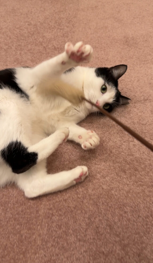 今回のお世話は豊中市にお住いの猫のなぎちゃんです何度もご利用いただいているネコちゃんですがご紹介は初めてです😻なぎちゃん 2歳の女の子です2年のお付き合いですが、今までご紹介出来なかった訳は、、、なぎちゃんが人見知りでソファの下から出てきてくれなかったからです( ノД`)シクシク…でもゴロゴロちゃんになりました~💓嬉しいですね 🙂おもちゃもたくさん遊んでくれるようになりました慣れてくれて良かったですなぎちゃん、またたくさん遊ぼうね 😛