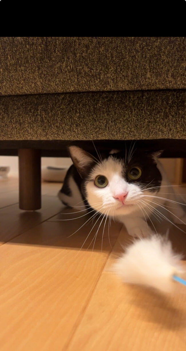 なぎちゃんが人見知りでソファの下から出てきてくれなかったからです( ノД`)シクシク…