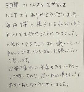 マンチカンのココくんとラガマフィンのレオくんのご家族様からアンケートのハガキが届きましたありがとうございます今後ともよろしくお願いいたします