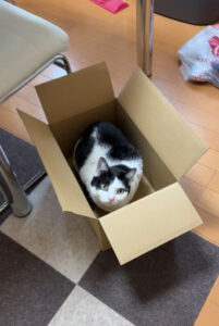 ダンボールって猫ちゃん好きですね、きっと潜るのが好きなんですね~🐱