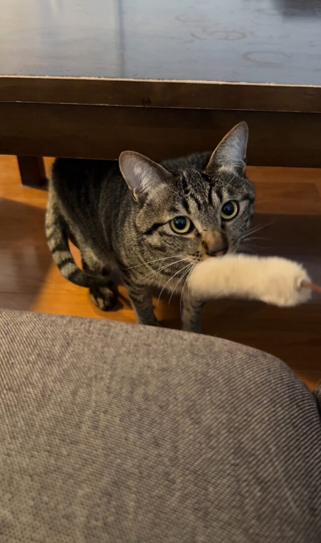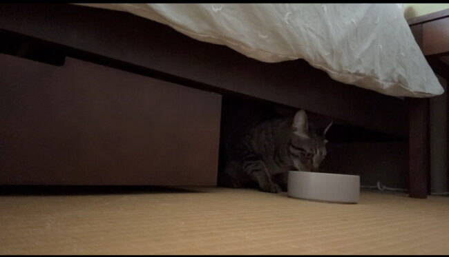 こたぬくんはベッドの下から出てこないのでご飯をお持ちしました(笑)