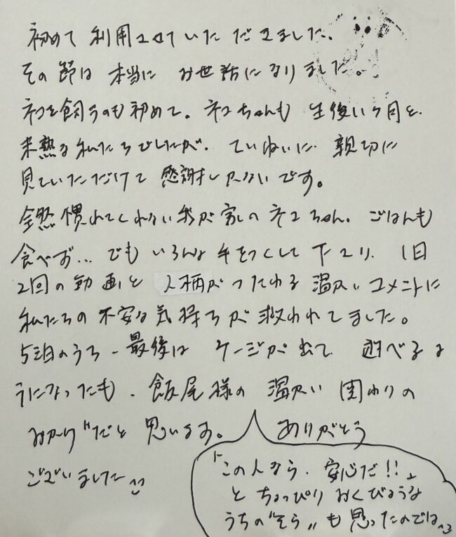 ブリティッシュショートヘアのそらくんのご家族様からアンケートのハガキが届きましたありがとうございます今後ともよろしくお願いいたします