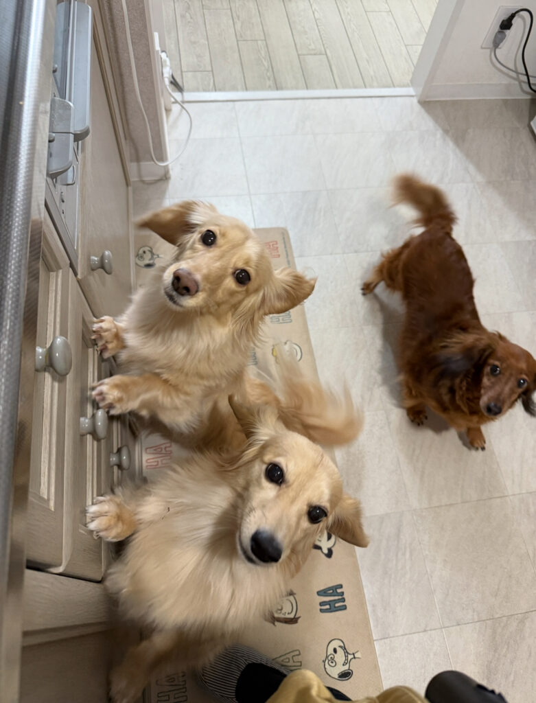 今回のお世話は箕面市にお住いのミニチュアダックスフンドのユメちゃん、アミちゃん、ダナちゃんです 何度もご利用いただいているワンちゃんです🐶