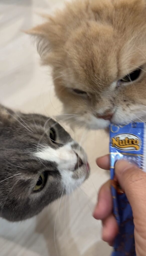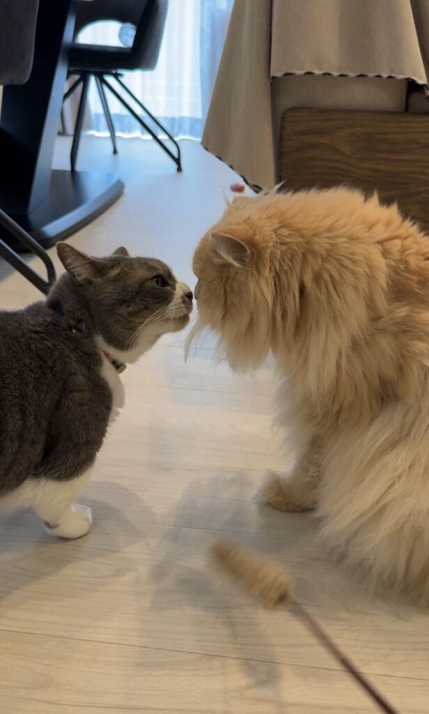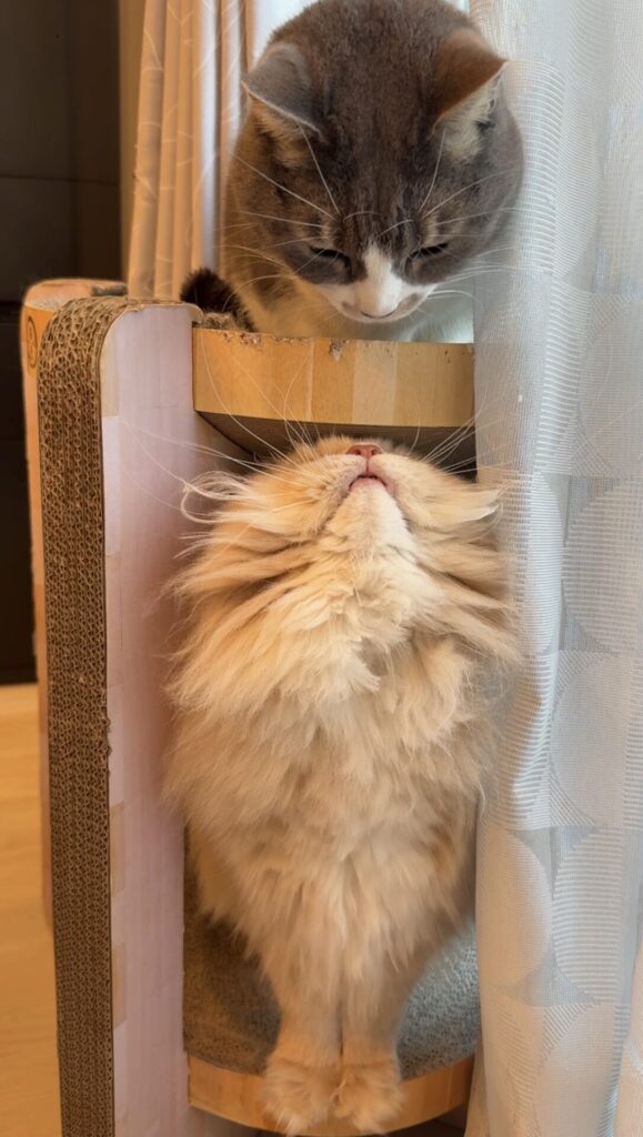 今回のお世話は箕面市にお住いのマンチカンのココくんとラガマフィンのレオくんです