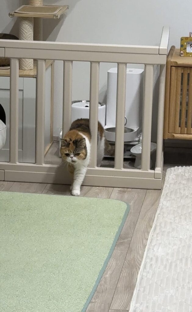 サークルの隙間から上手に出てくるむぎちゃん(笑)