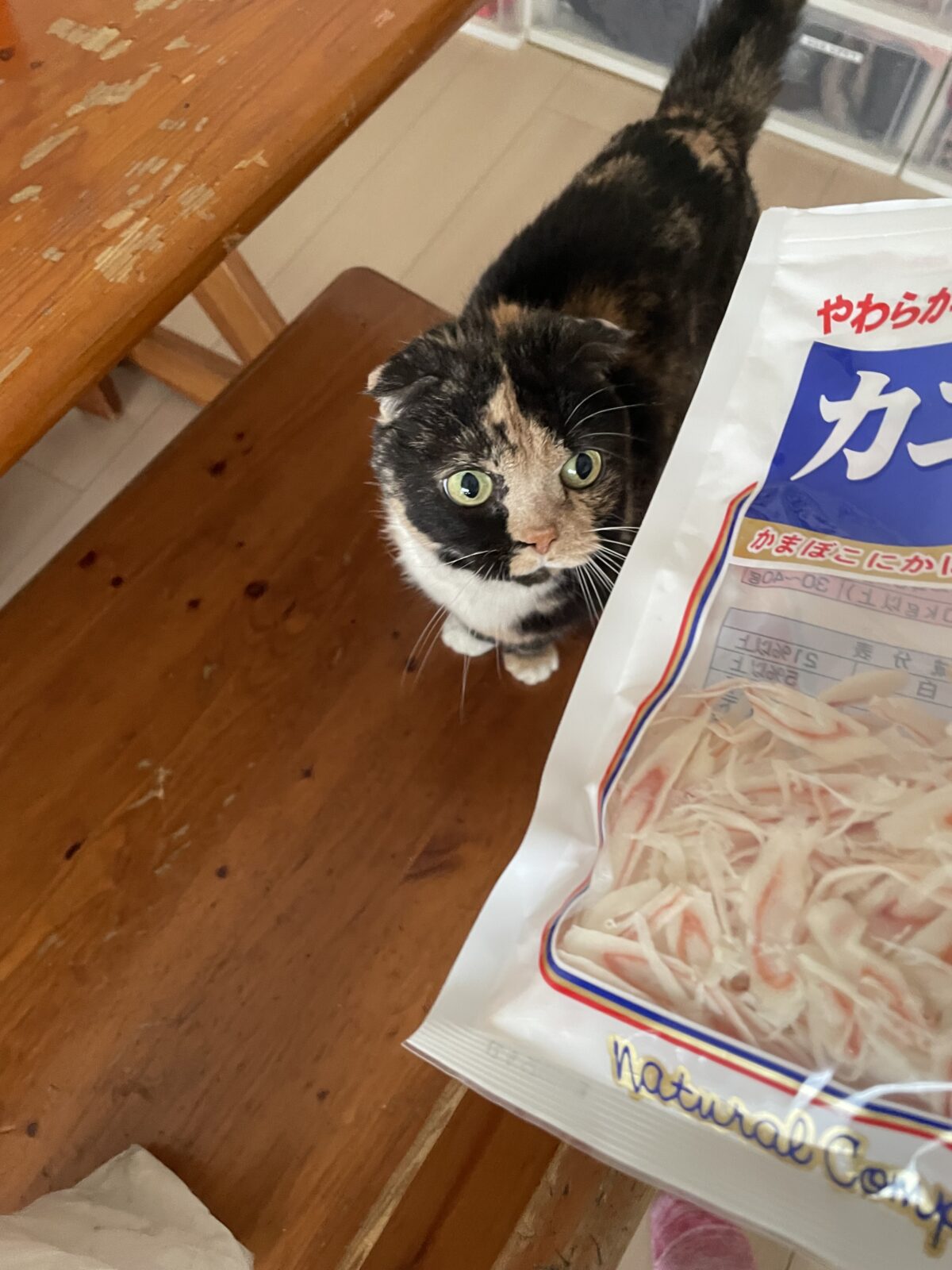 モリーちゃんは毎回玄関まで迎えにきてくれて、早速大好物のカニカマを催促