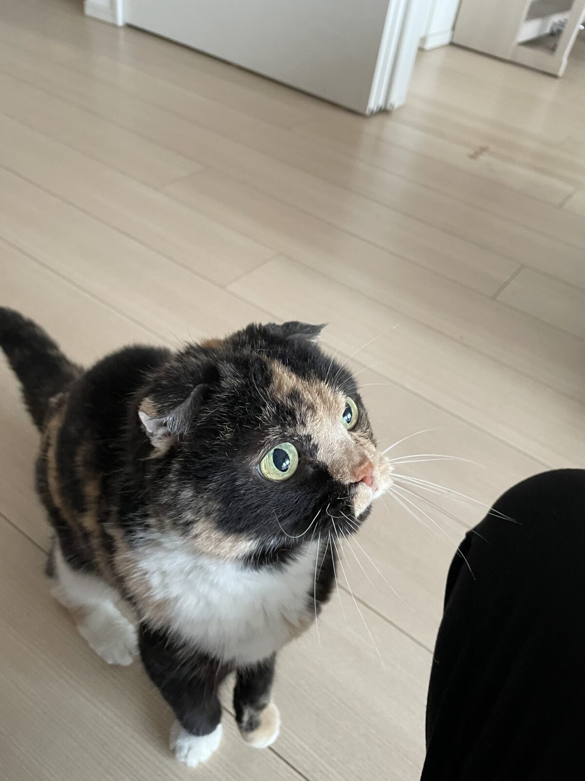 最近は椅子にジャンプしてそこで待ったりして、いろんな姿を見せてくれるモリーちゃん