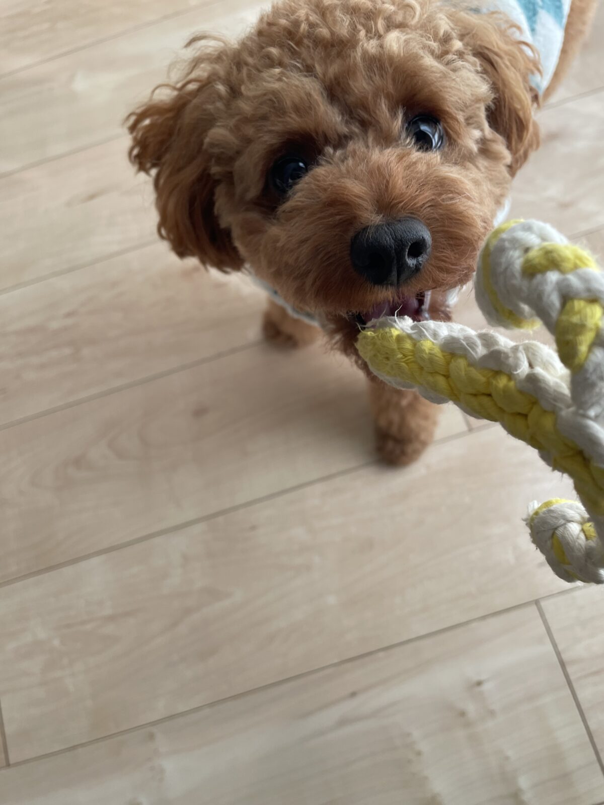 ハーネスを着けるまではお部屋の中で追いかけっこ(≧∀≦)