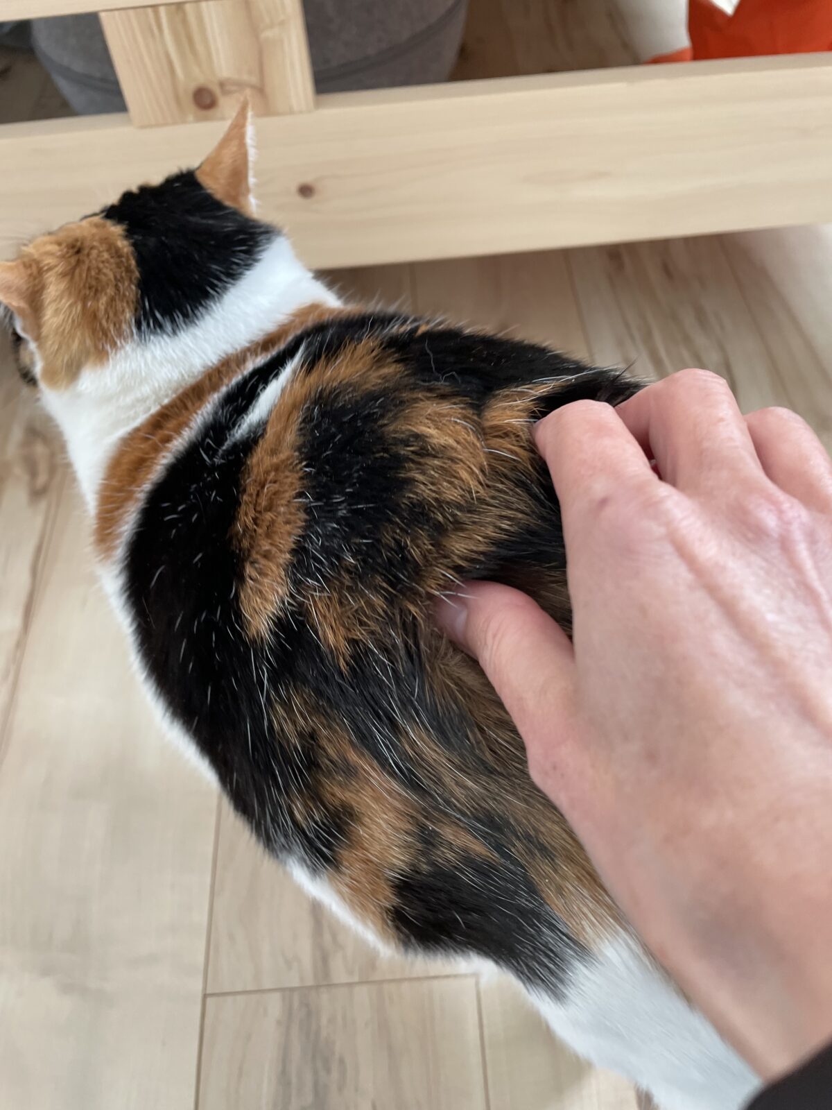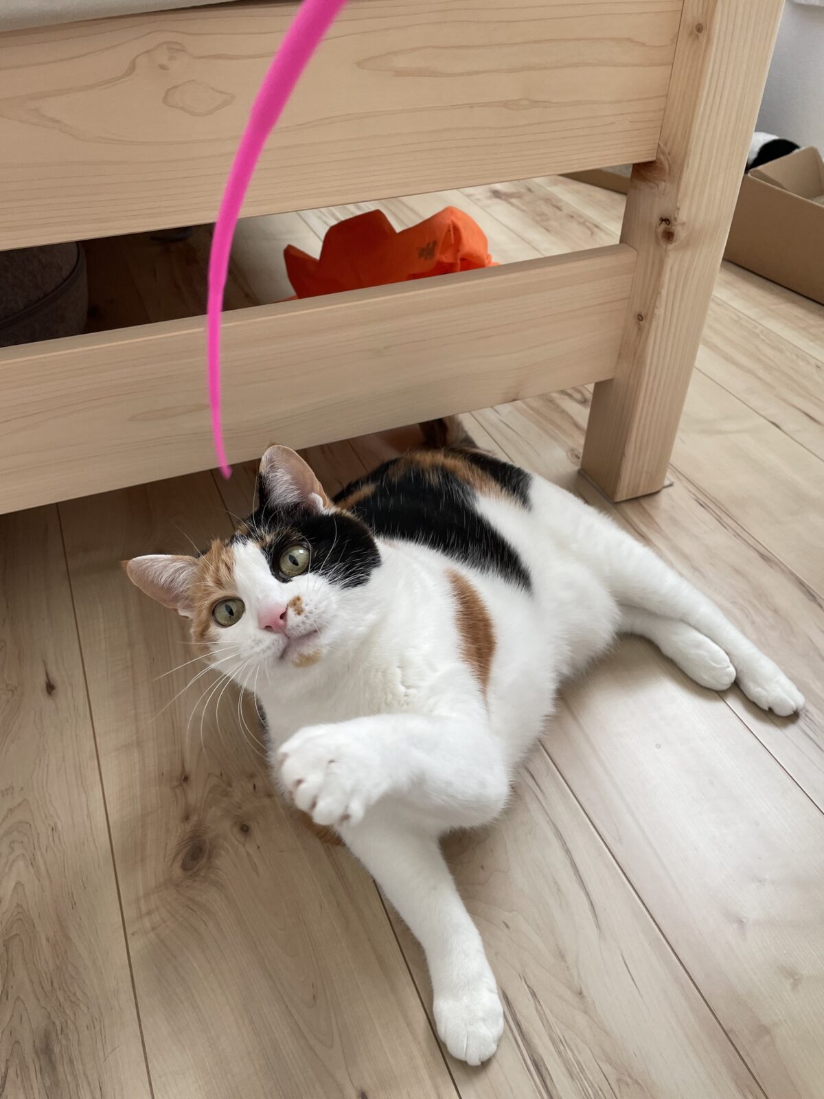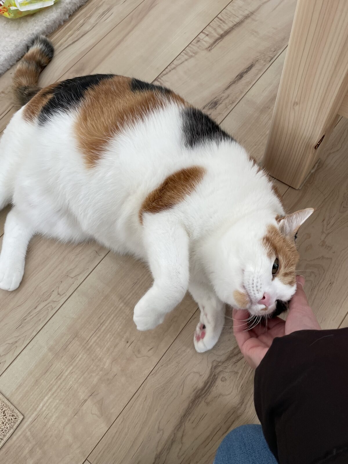 おもちゃで遊んでいても、いつの間にか体を寄せてきて、なでてーとリクエストしてくれたね