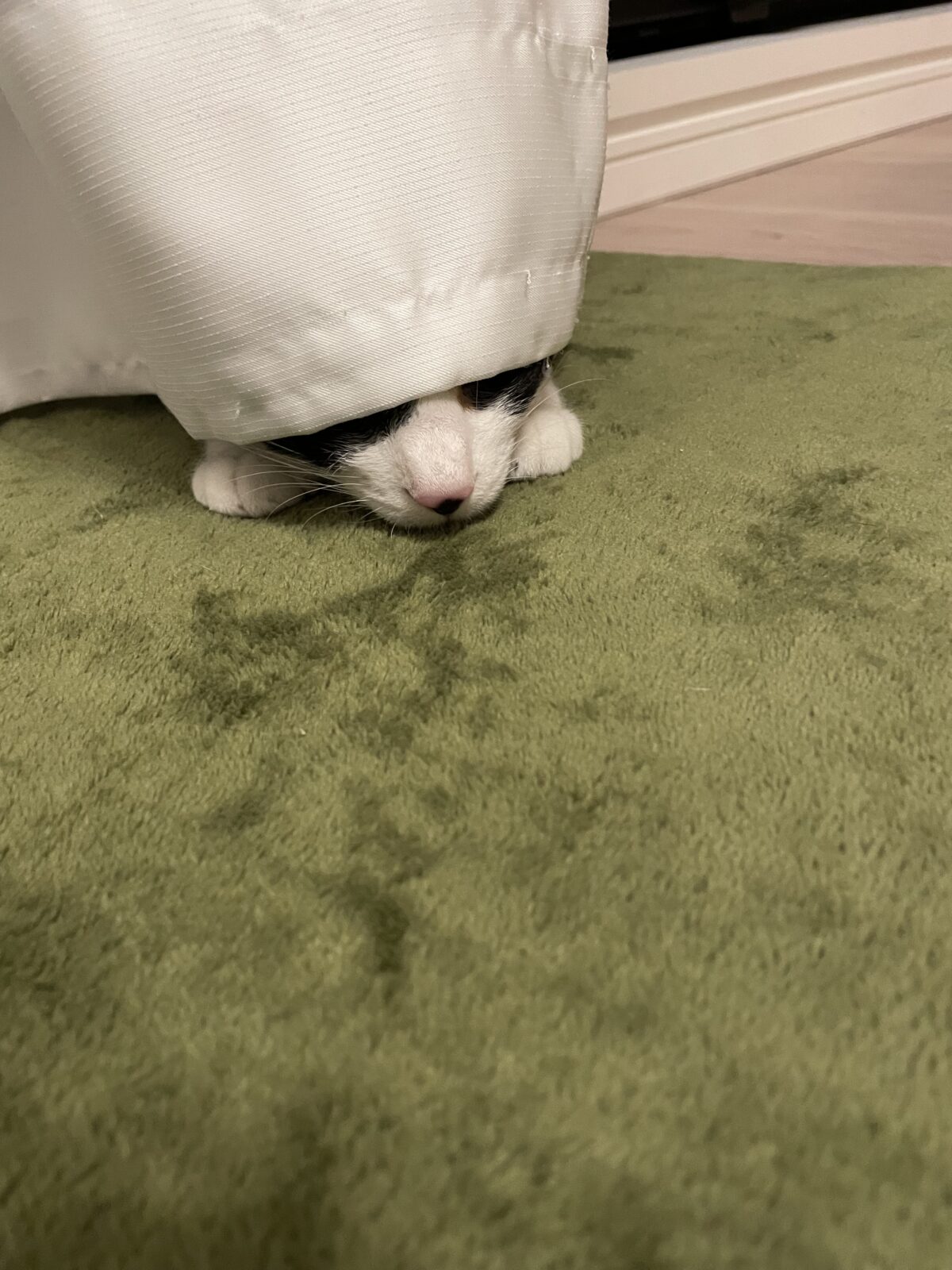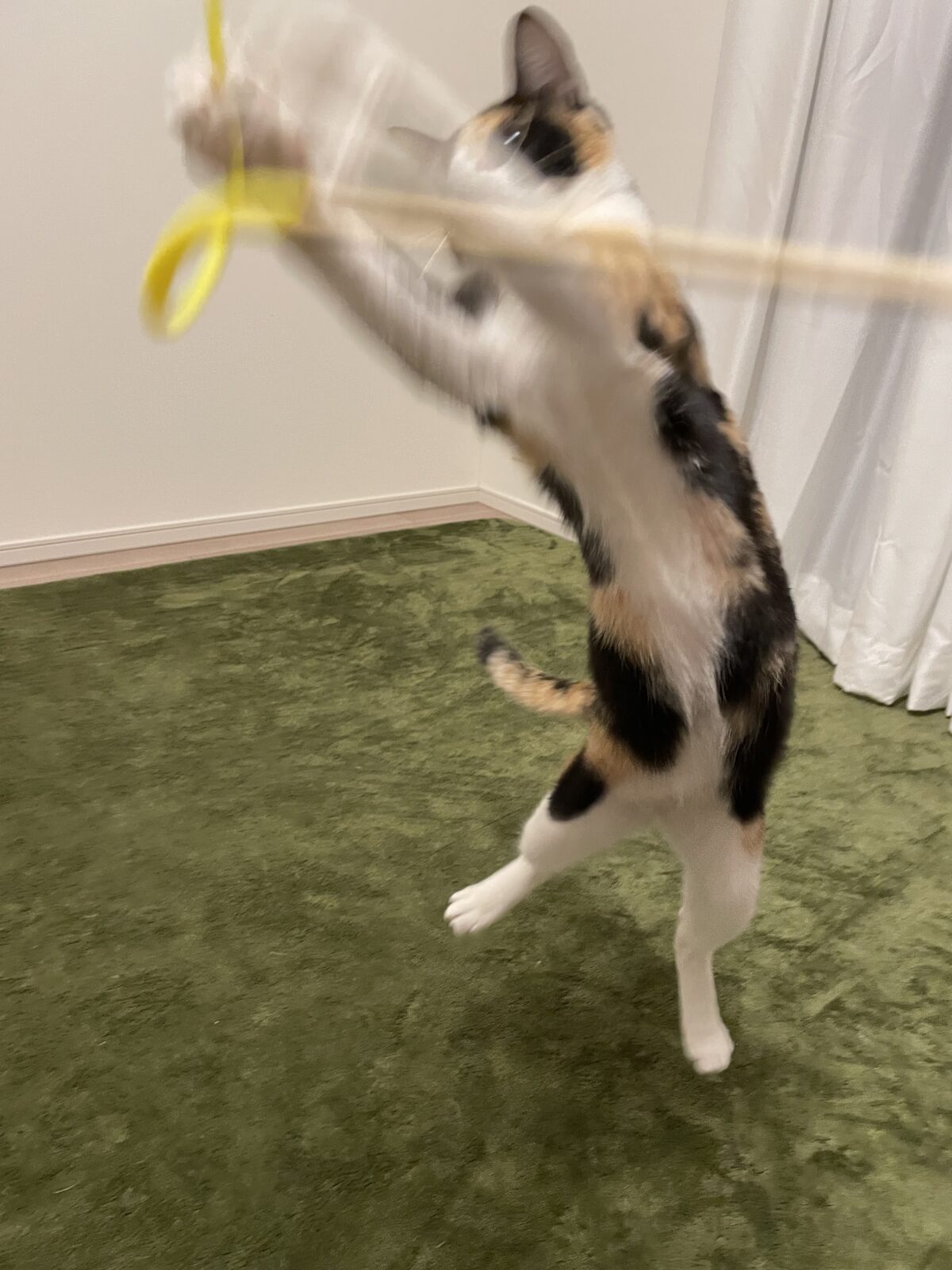 おもちゃ狙いはカーテンに隠れちゃうよ作戦