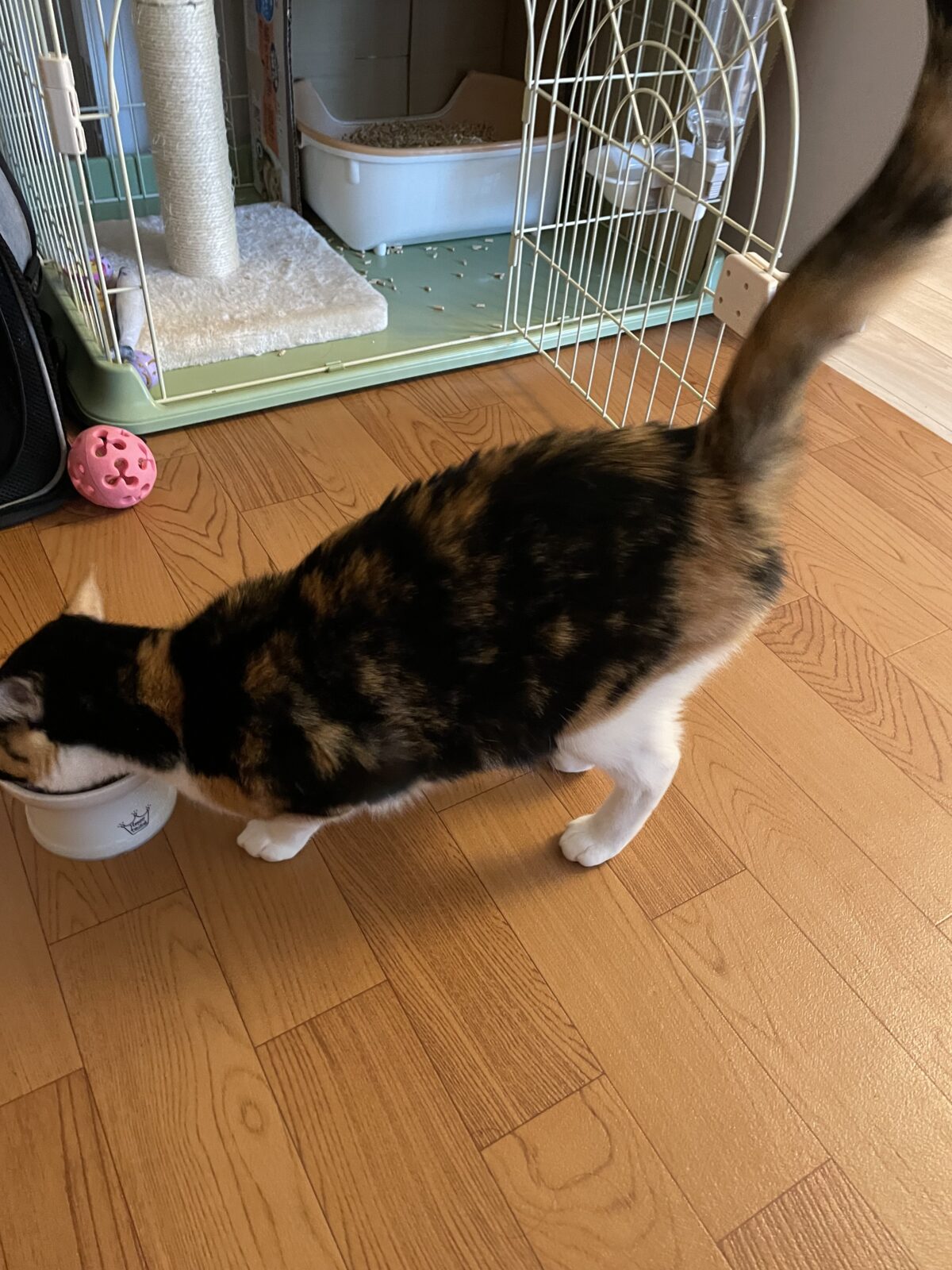 食欲バッチリ、しっぽ立ててご機嫌だね✨