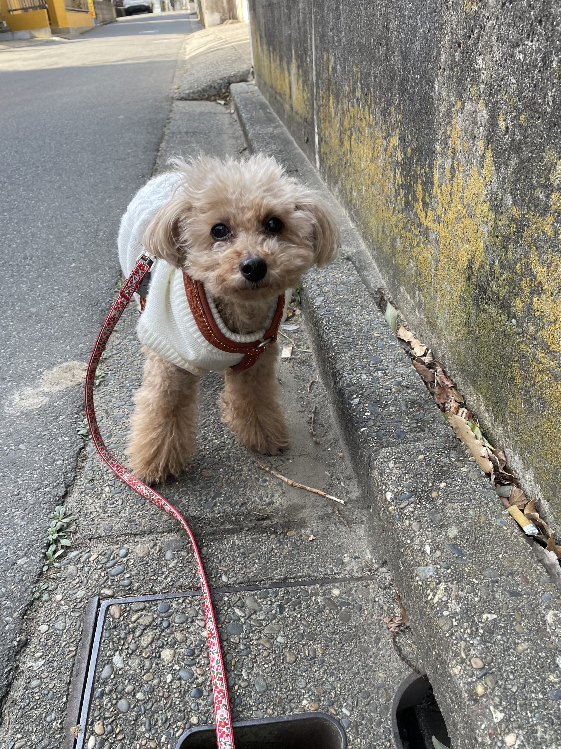 最近、お散歩から帰ろうとするとまだ帰りたくないよーと自己主張をしてくれるようになりました