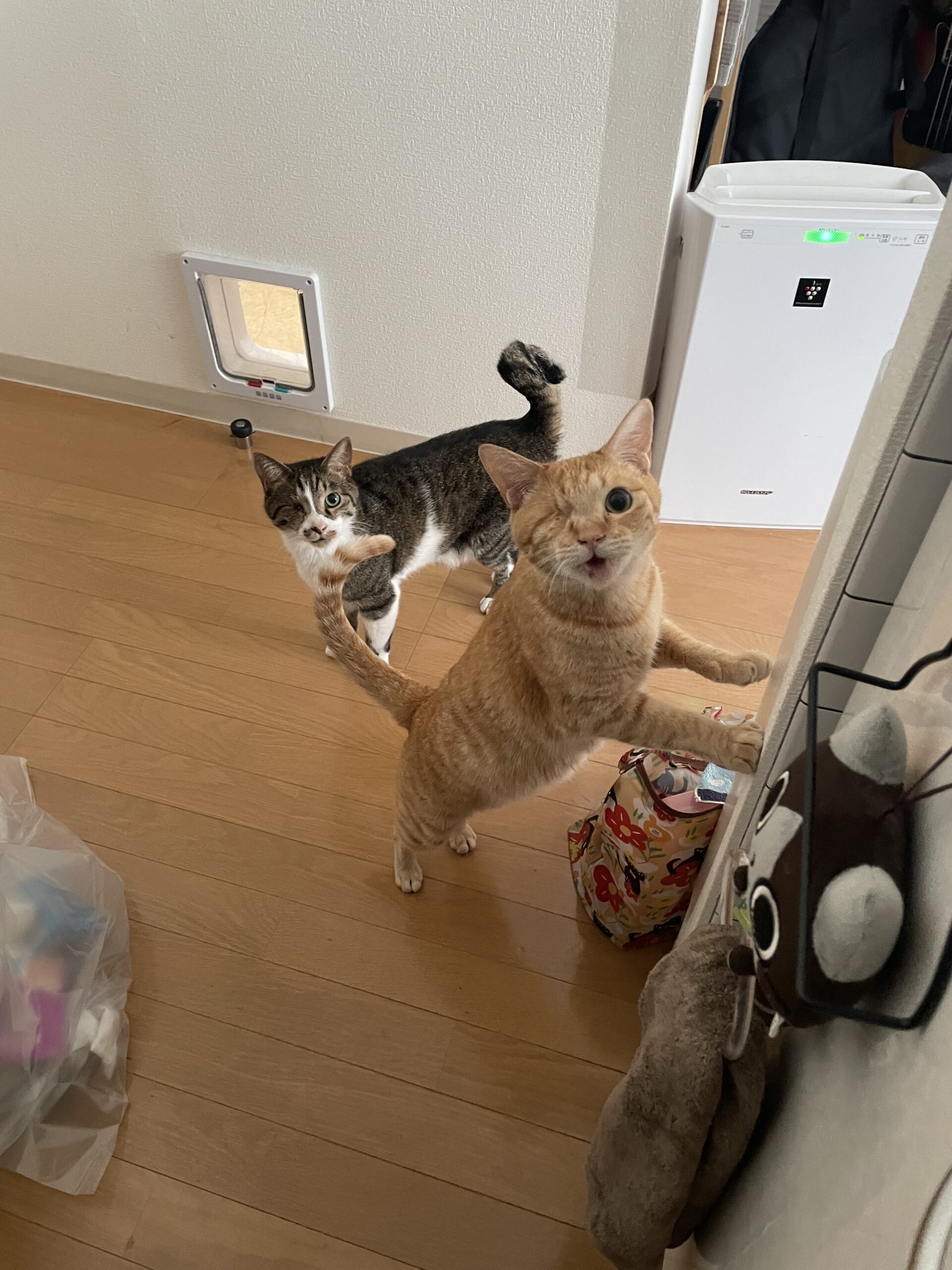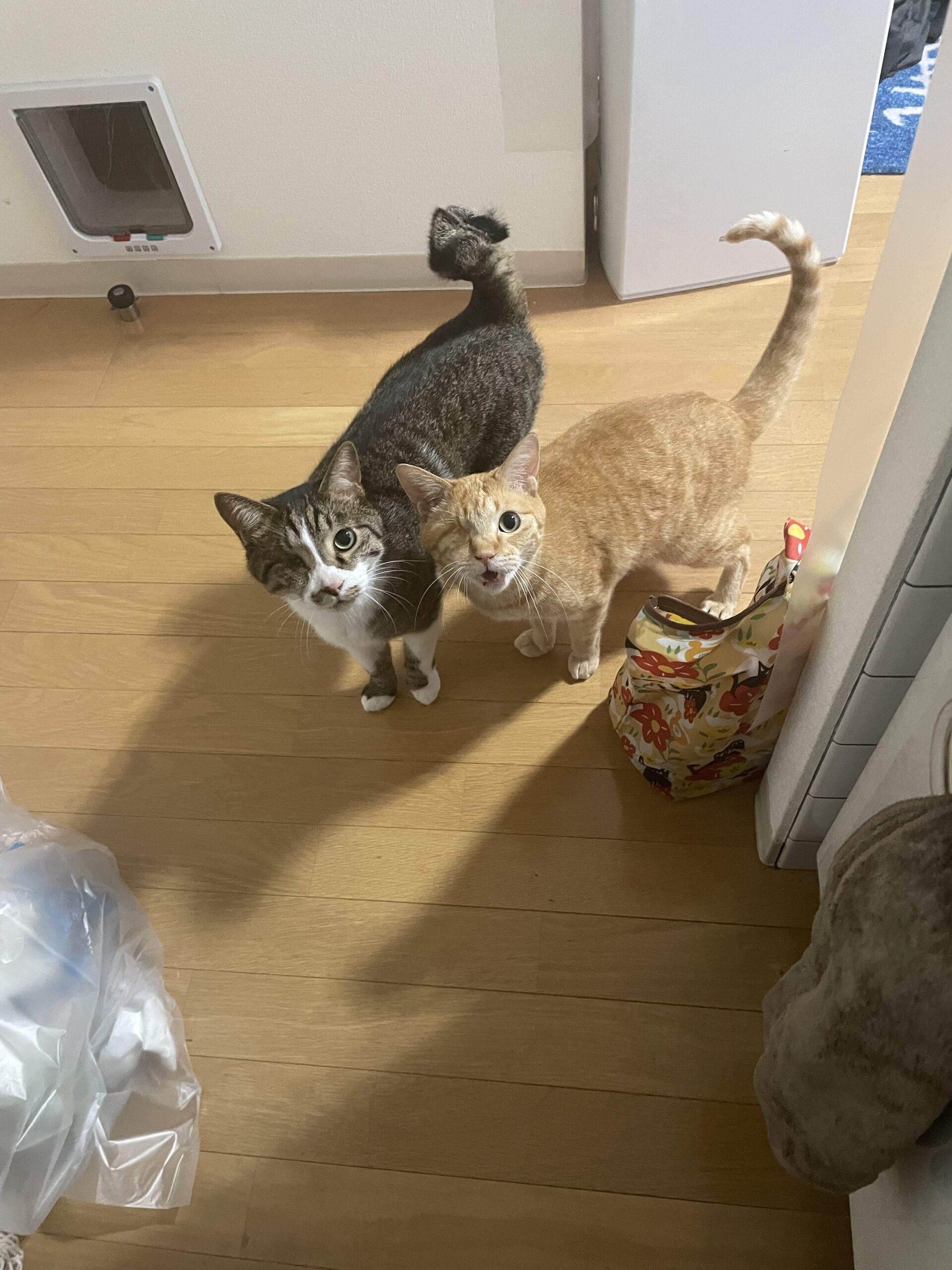 ご飯が大好きな2匹は、準備の物音ひとつで反応し、特にあげぱんくんは隠れていたカーテンから出てきてキッチンで催促するほど🤣