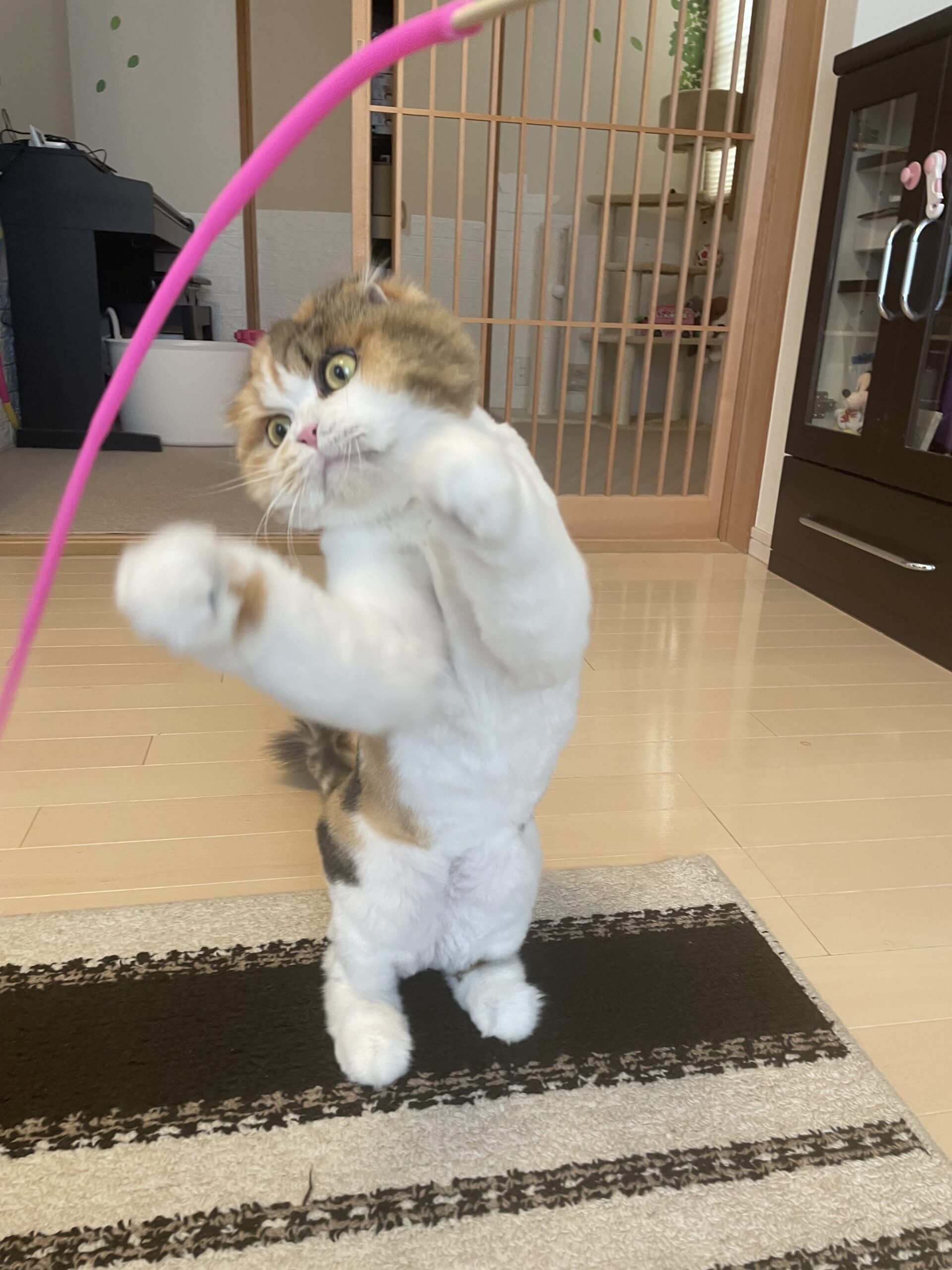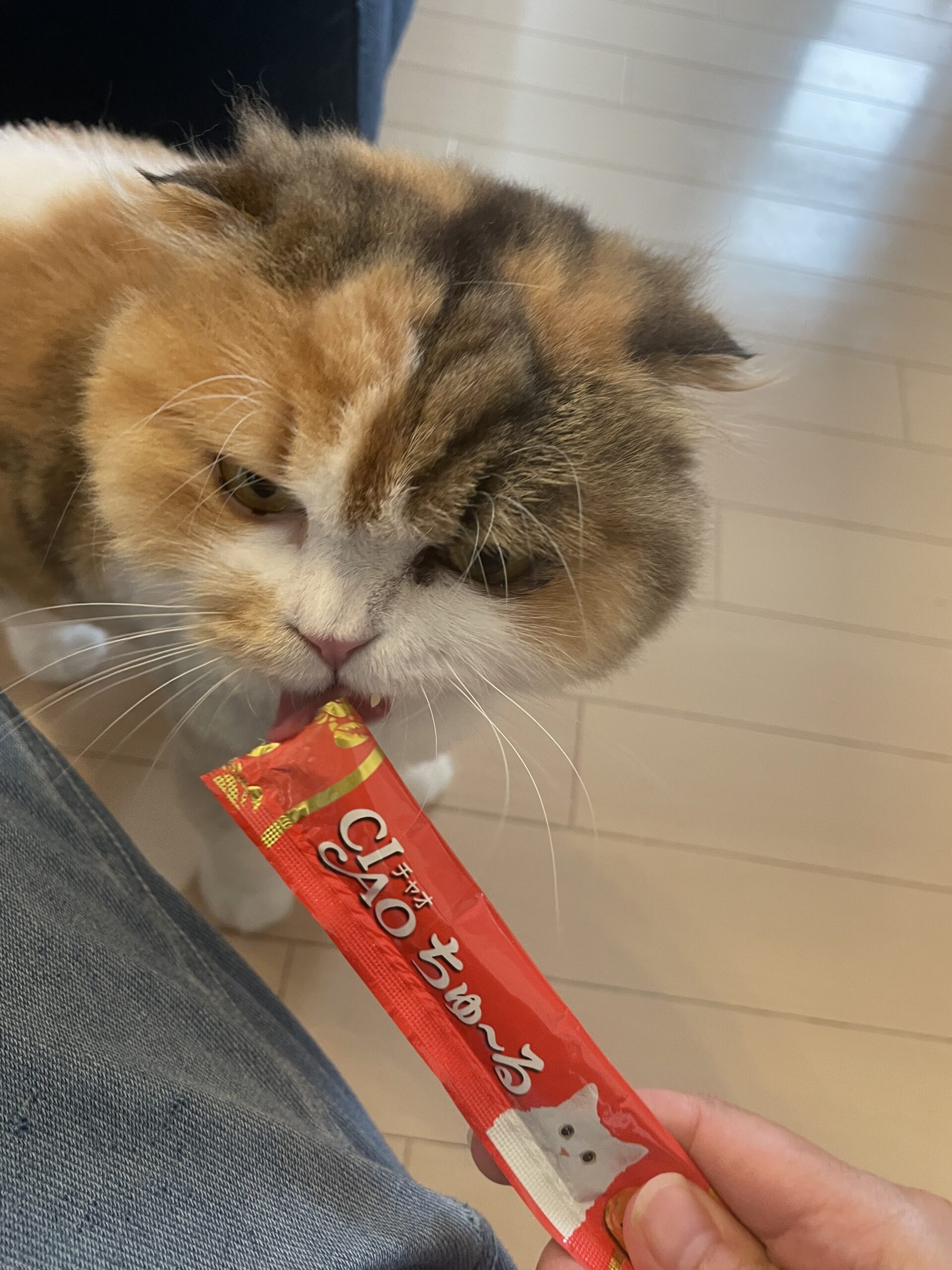おもちゃで遊んだり、大好きなチュール食べる時も