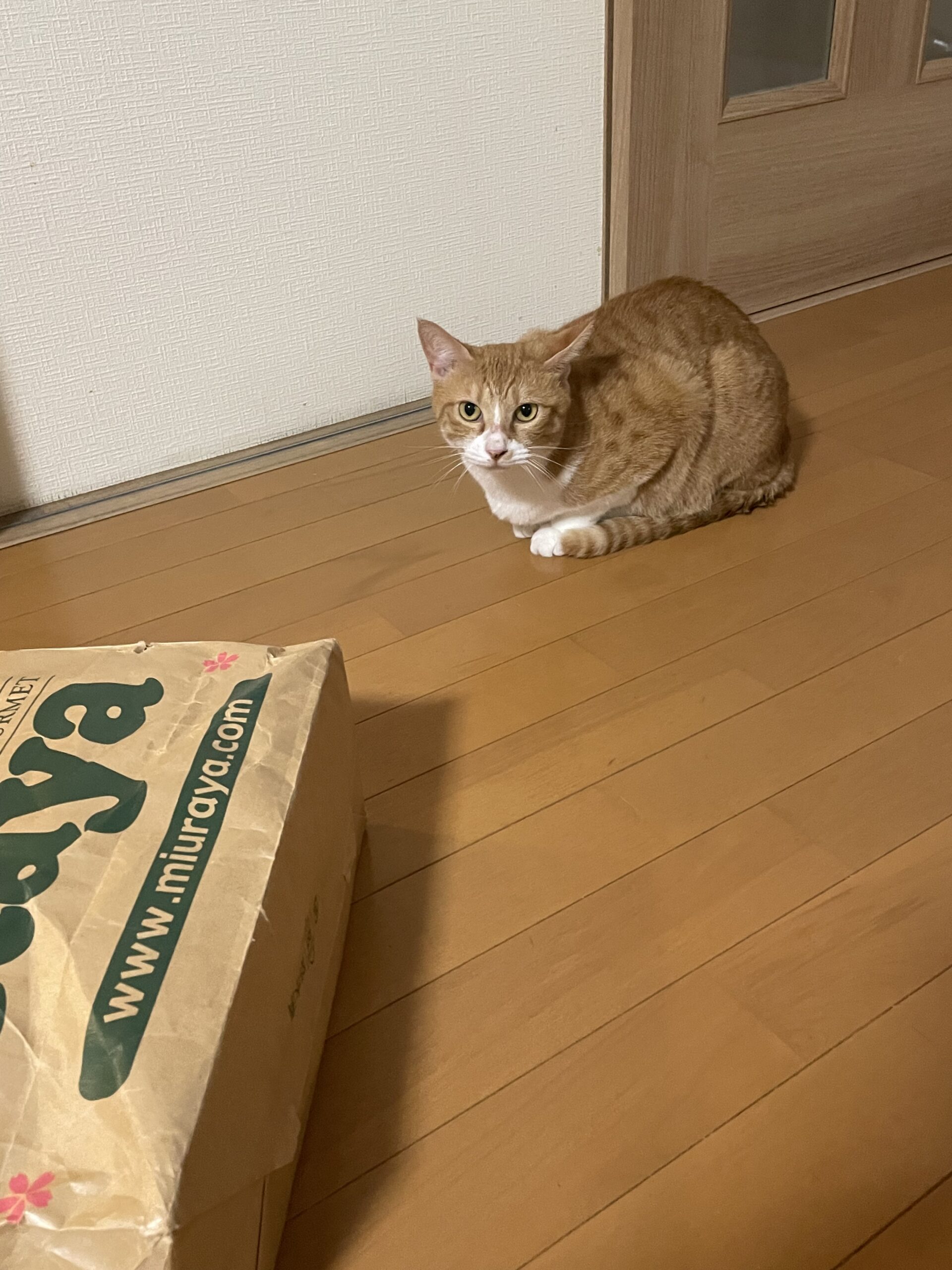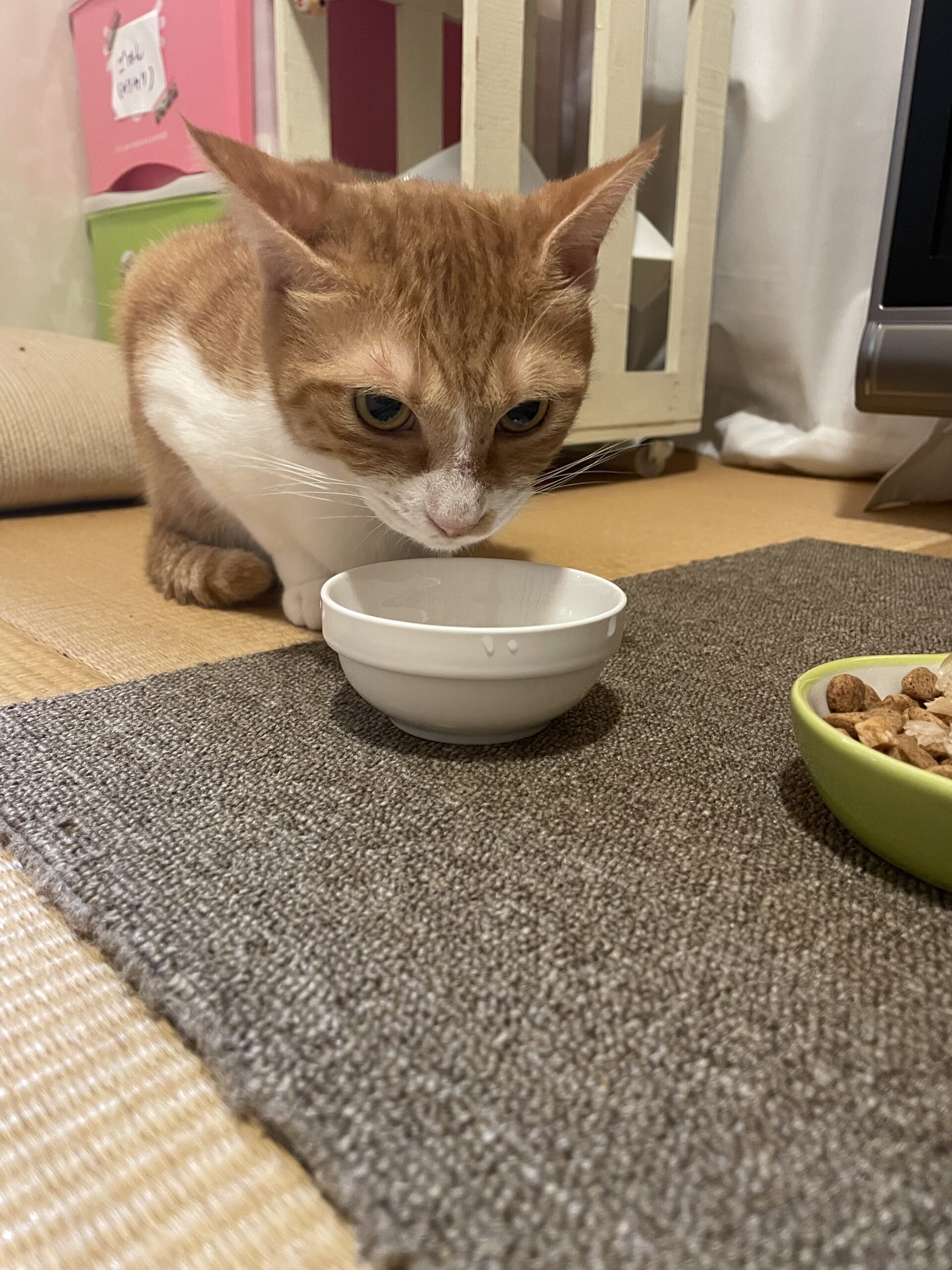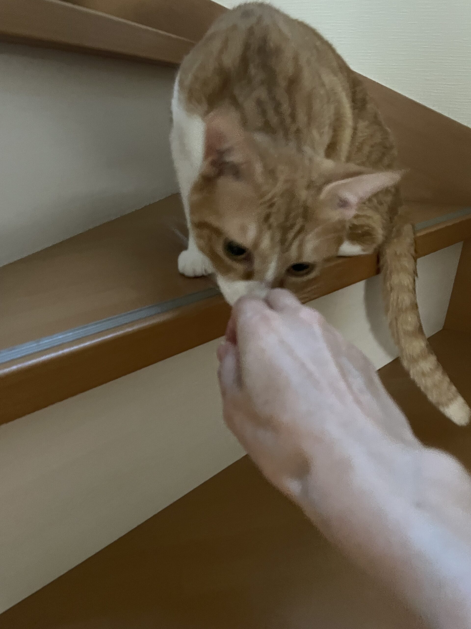 そっとそっと階段おりて、ご飯の場所まで来てくれるね