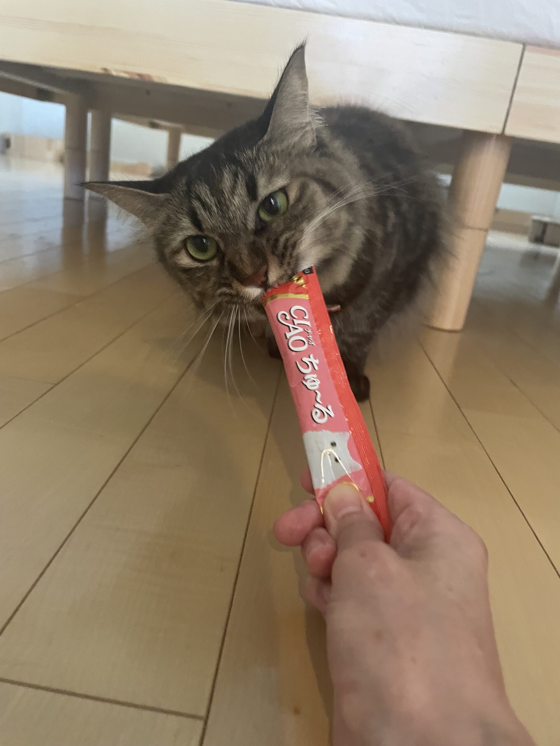 次第に慣れてくれてチュール食べたいって言ってくれたね