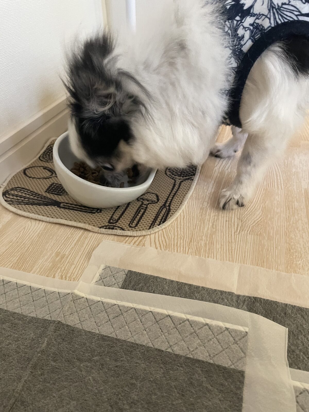 そしておやつは穴の開いたボールに詰めて、転がして食べてもらいます