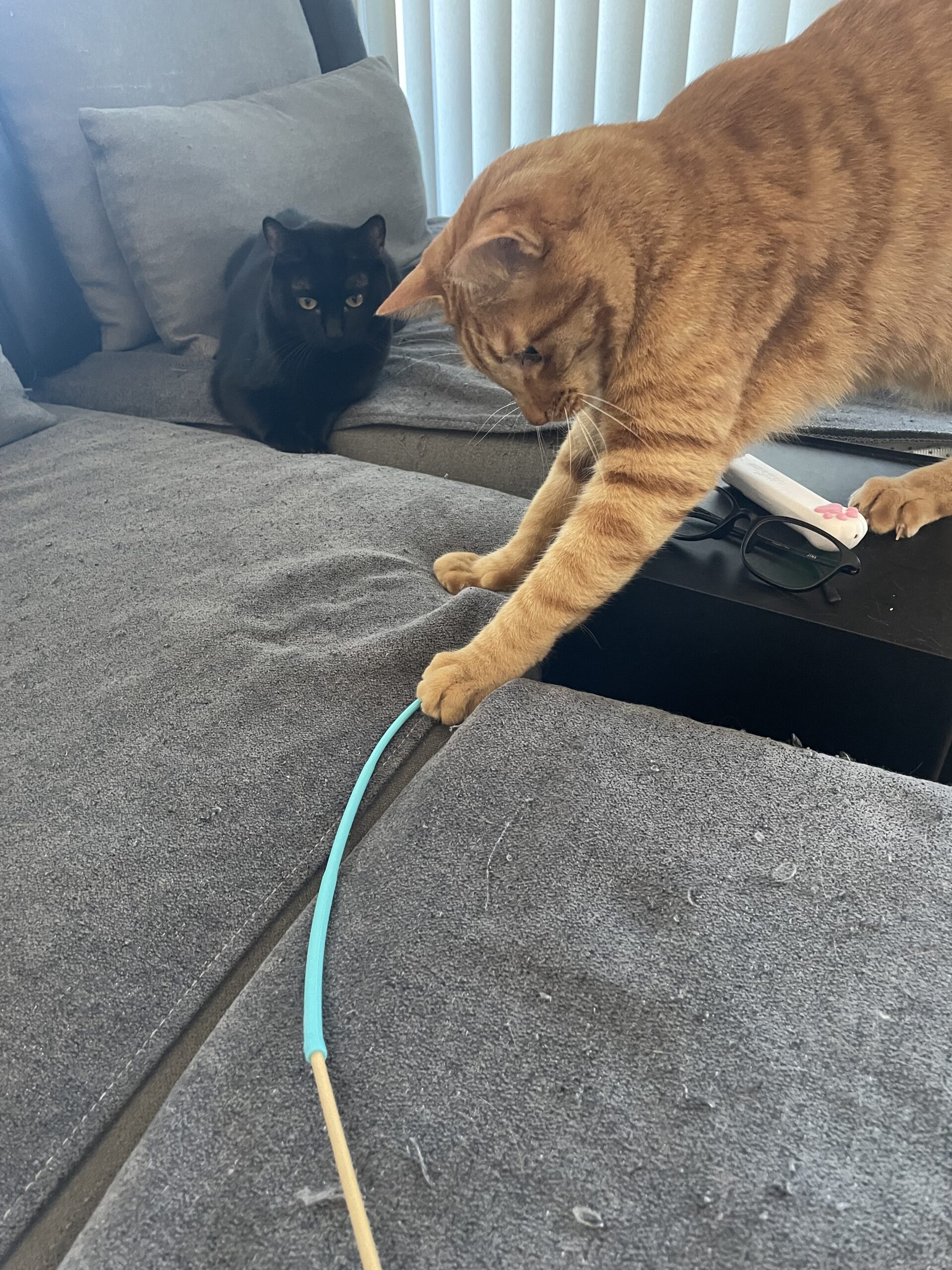 シッター1人に猫3匹の遊びは結構ハード(笑)