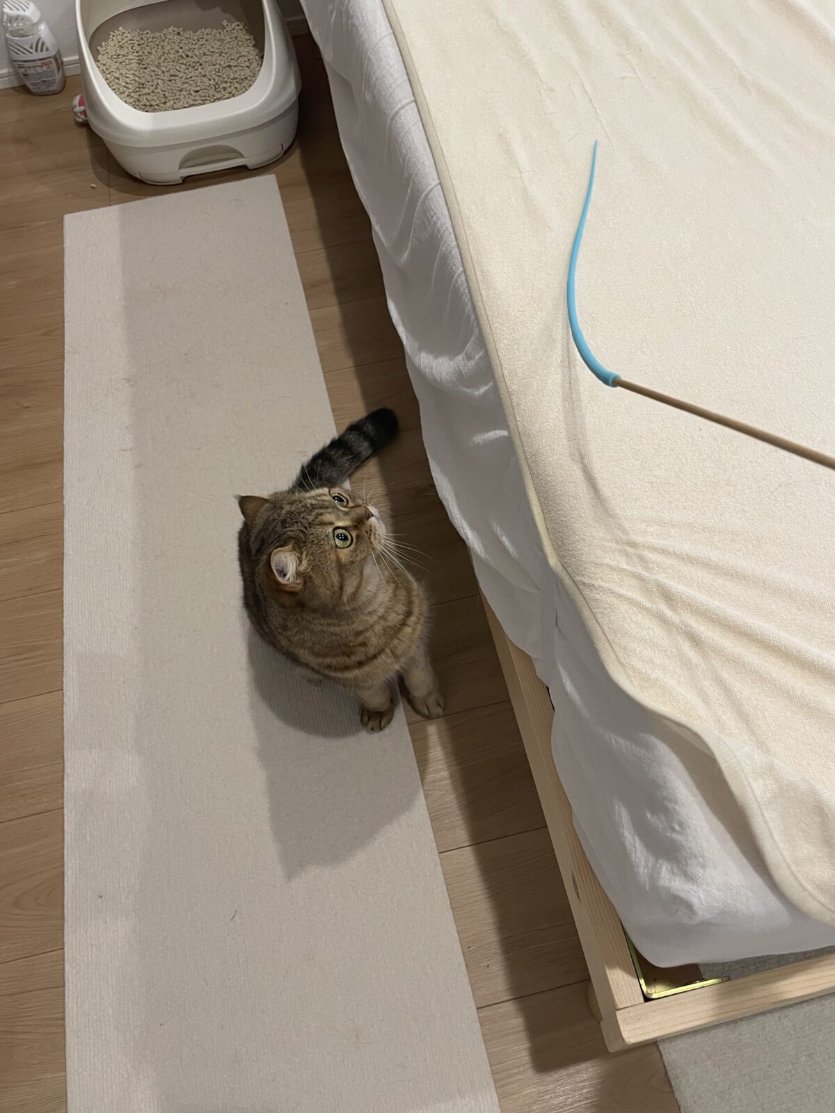でもお世話当日、あれ?ベッド下から出てるよ❓