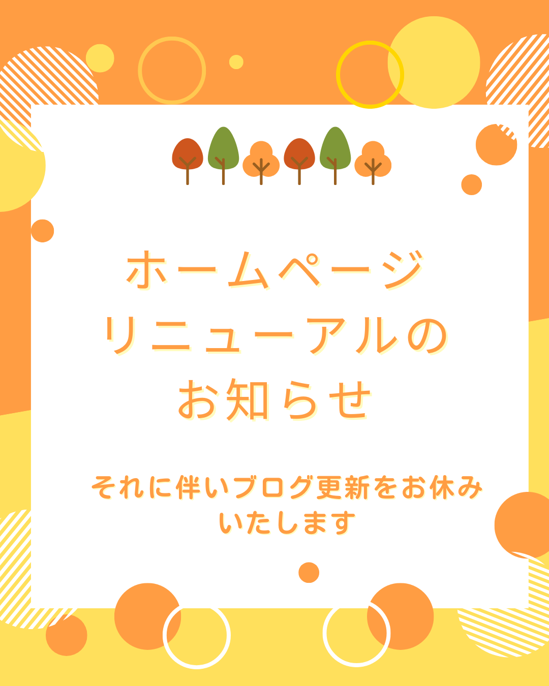 リニューアル作業期間は10月7日から10月15日を予定しております、その間はお知らせやブログの更新が出来ません🙇♂️💦