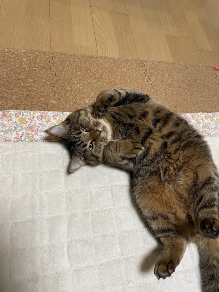 時間になって帰り支度を始めると、突然ゴロンと可愛い姿を見せてくれたたいがくん