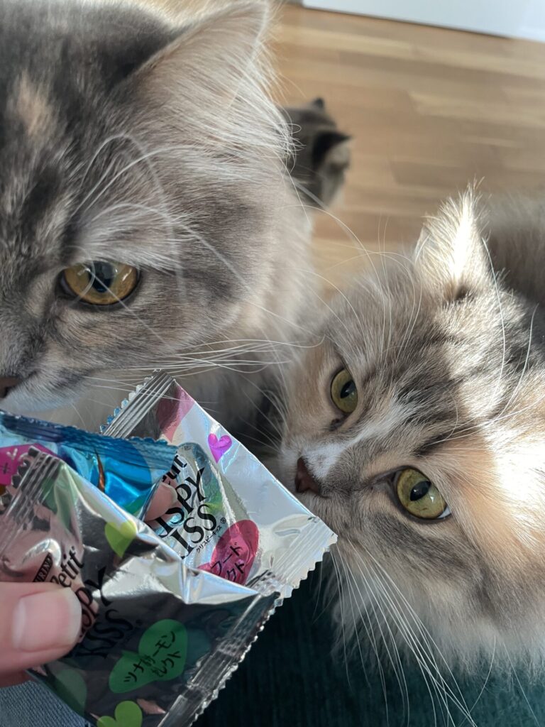サイベリアンのみこちゃん(鼻黒)とすずちゃん(鼻白)