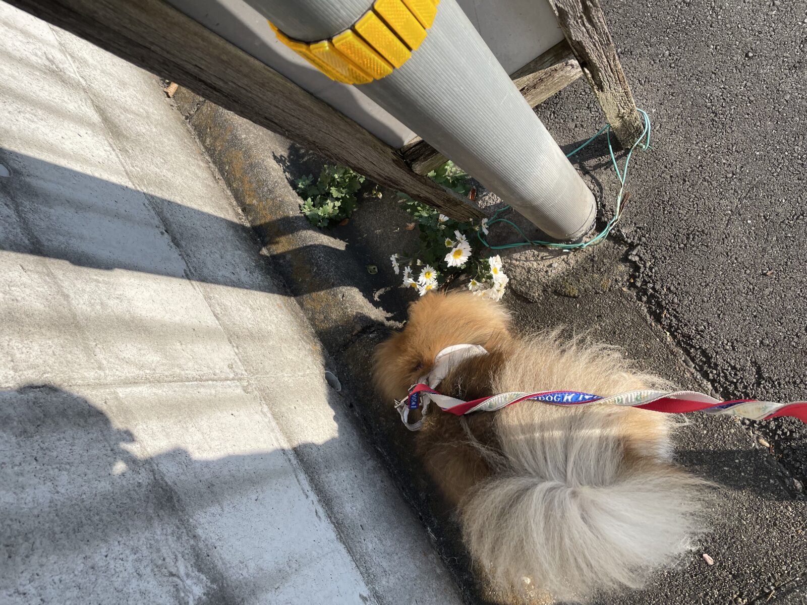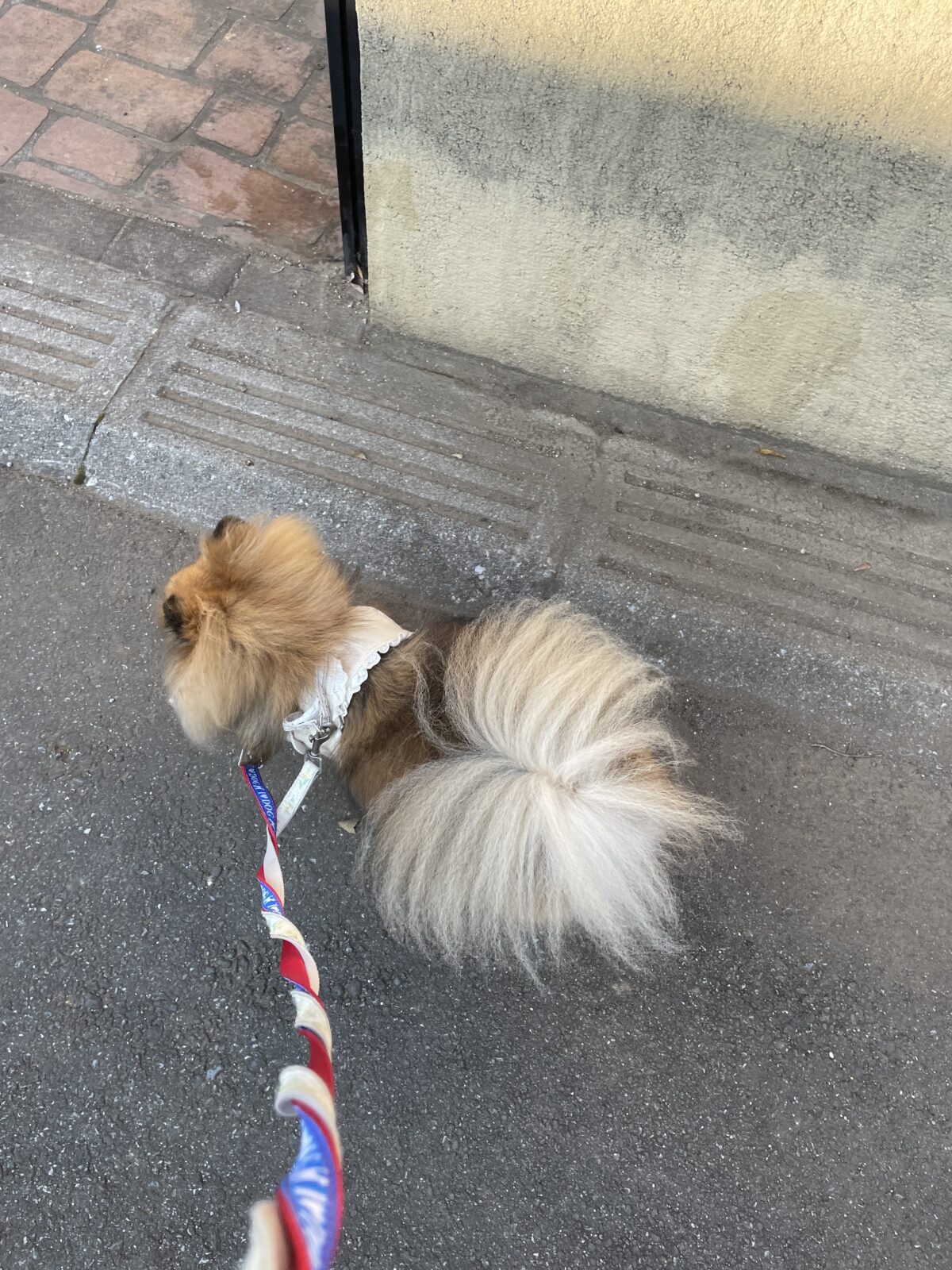 食後にすみれちゃんのお散歩、軽快に歩いてくれます。疲れると立ち止まっちゃうのであとは抱っこですけど(笑)