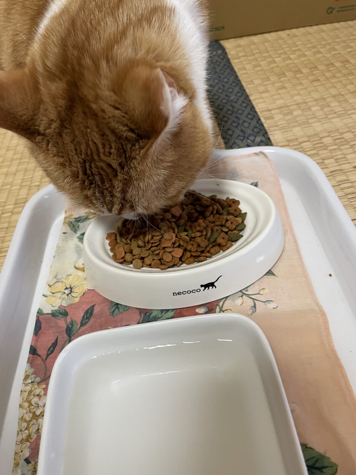 ご飯がとても大好きで毎回完食してくれます。ご飯の支度中も、日当たりの良い場所に行ったりにゃんモックに行ったり活動できなむさしくんでした。