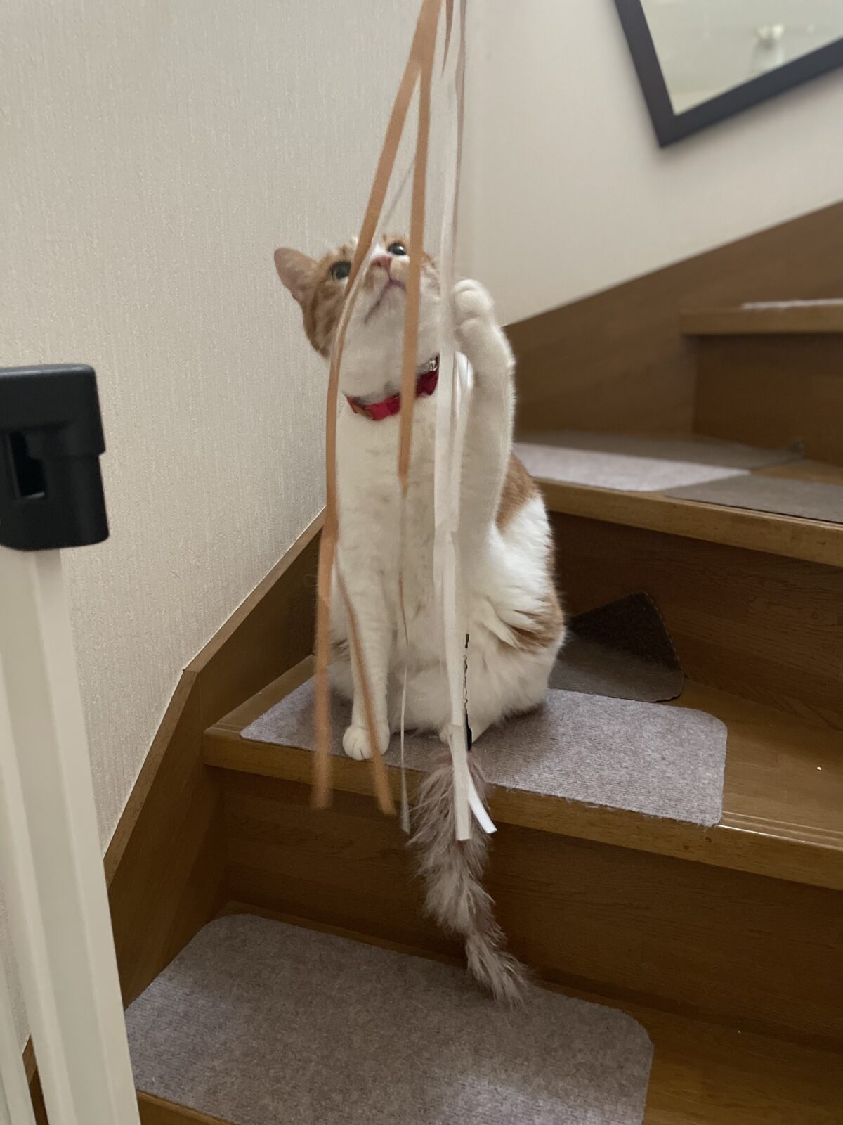 その後は恒例の猫じゃらいタイムです。遊ぶ場所は以前からちゃんと決まっていて、私が他のお世話をしている間もお利口に遊び場所で待っていてくれたアリスちゃん。ありがとう^_^
