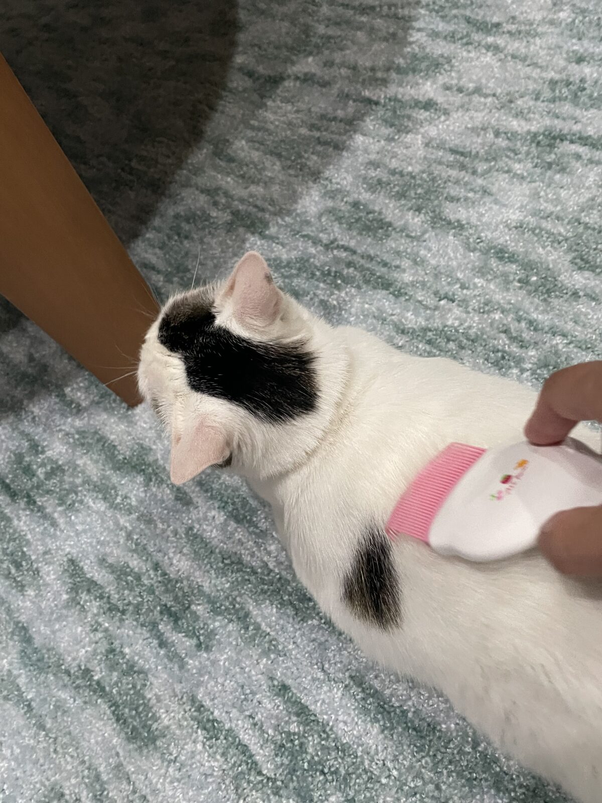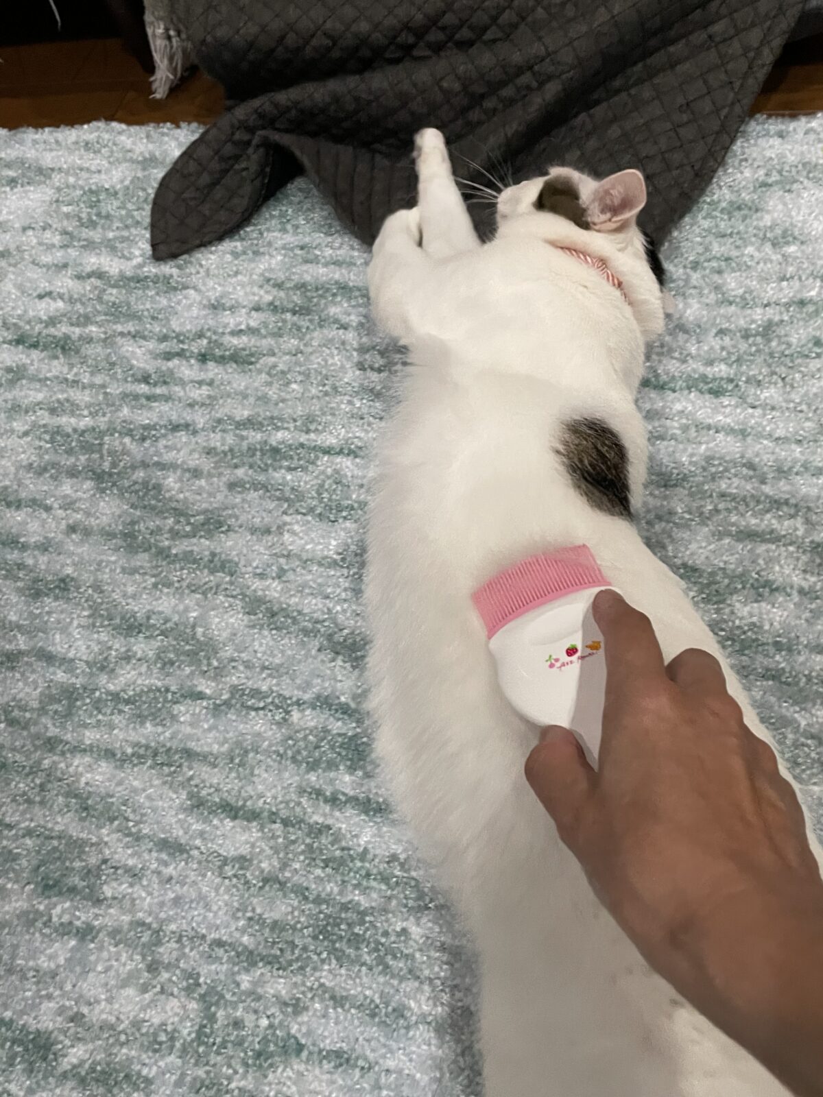 最終日、またまたご飯を食べに来てくれました。飼い主様からブラッシングが好きと聞いていたのでブラシを当ててあげるとコロンとしてくれて、ブラッシングさせてくれました^ ^