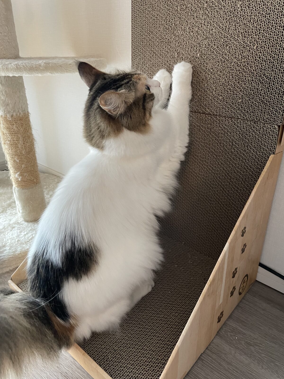 一方、メインクーンのにゃむちゃんは人と触れ合うのが大好き。お世話をしていても可愛い声で鳴きながら後をついてきます。