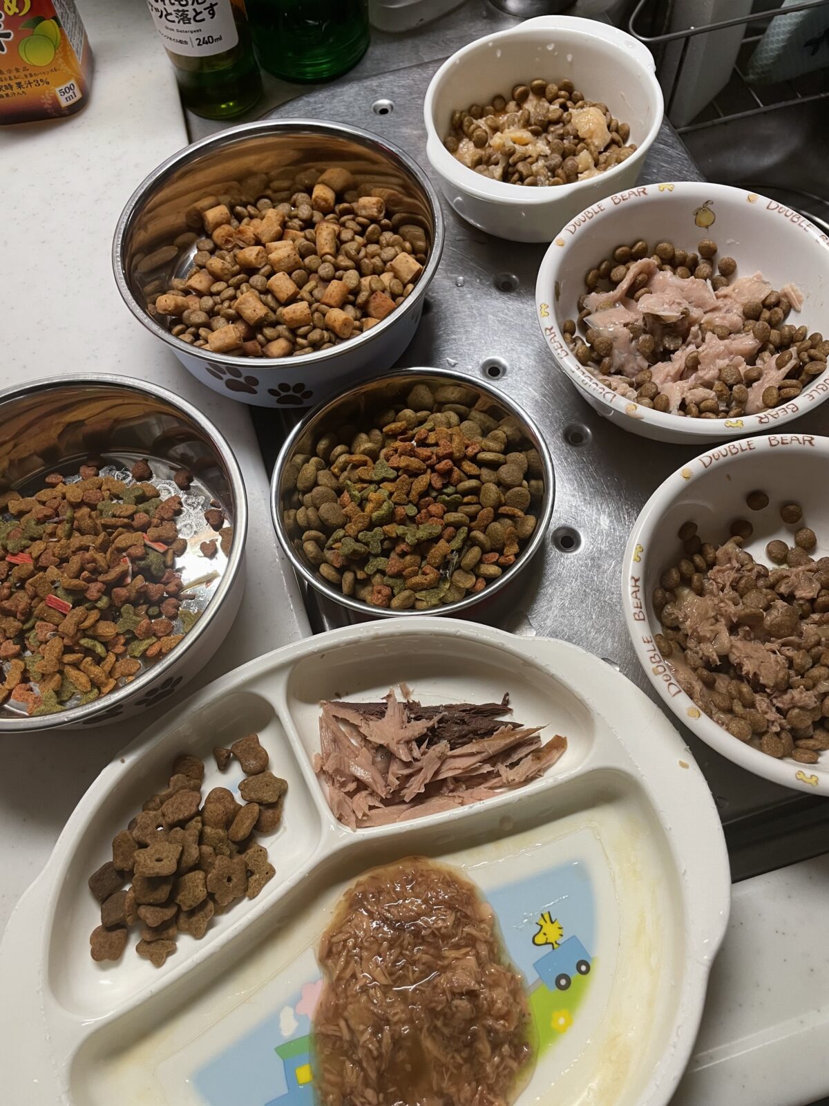 ご飯は食べるものが違っていて、食べる場所もそれぞれ決まっています。飼い主様の愛情が伝わります。