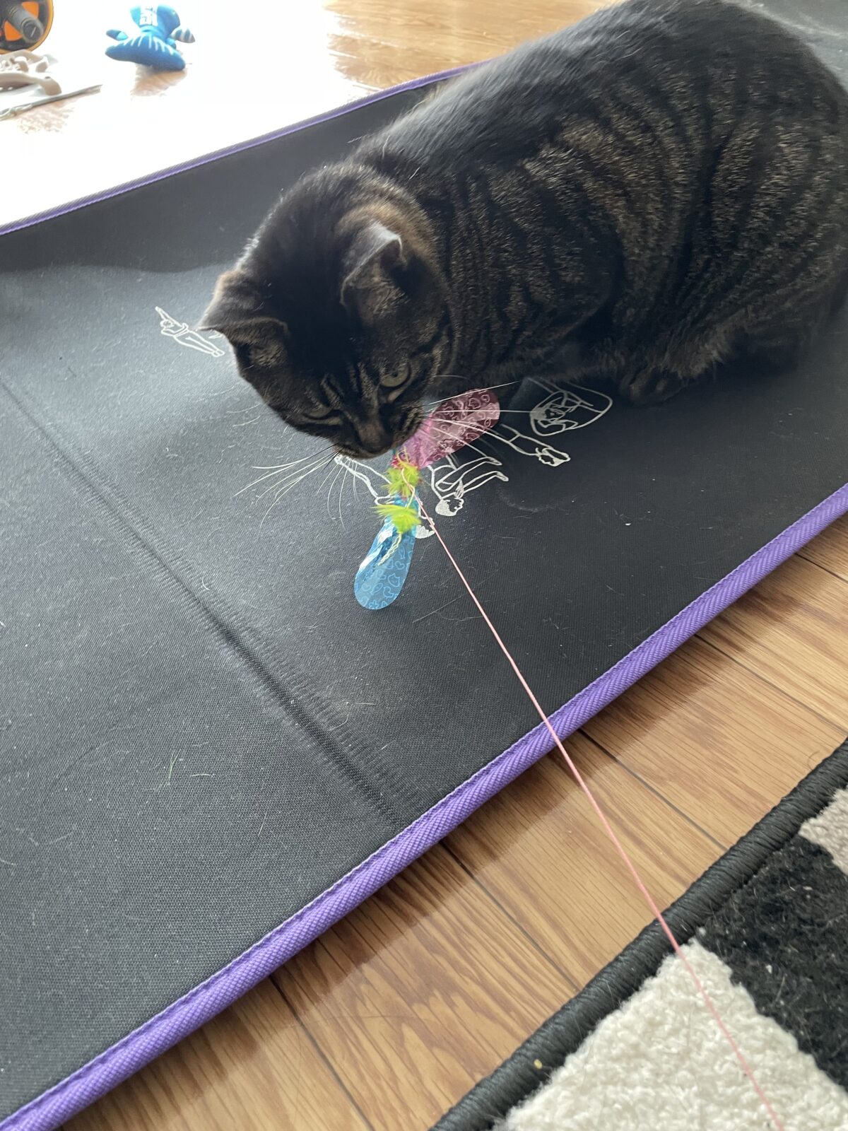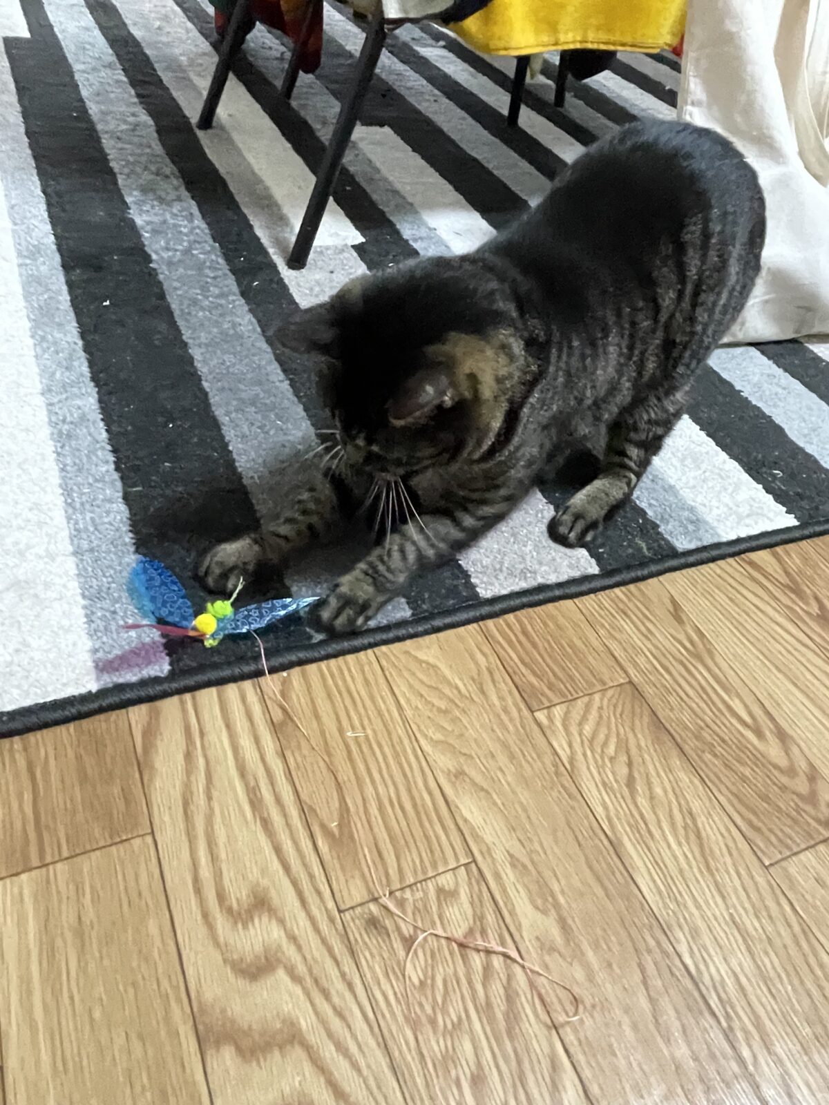 甘い鳴き声は今も変わりません。そして、最近はおもちゃで遊ぶことも出来るようになりました。結構活発に動きます^_^