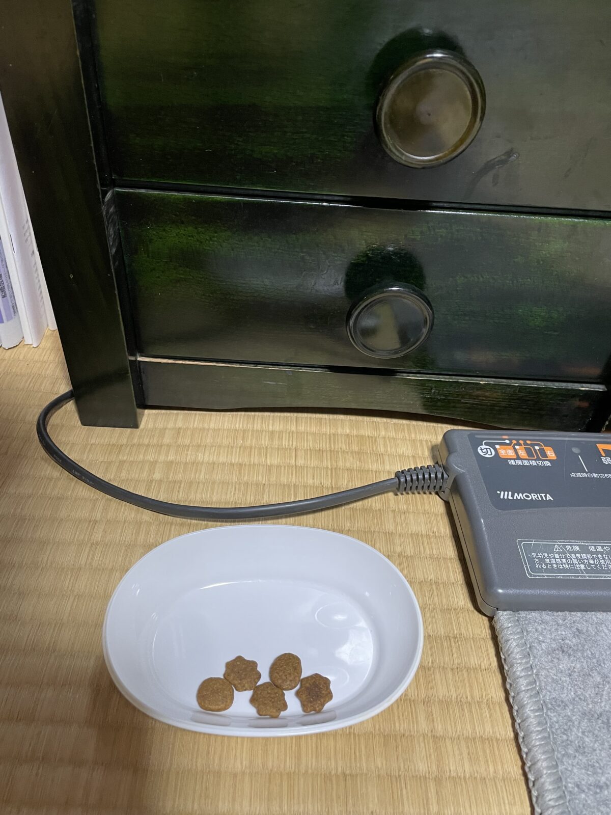 ご飯とお水と、トイレを綺麗にしたら帰るよ。