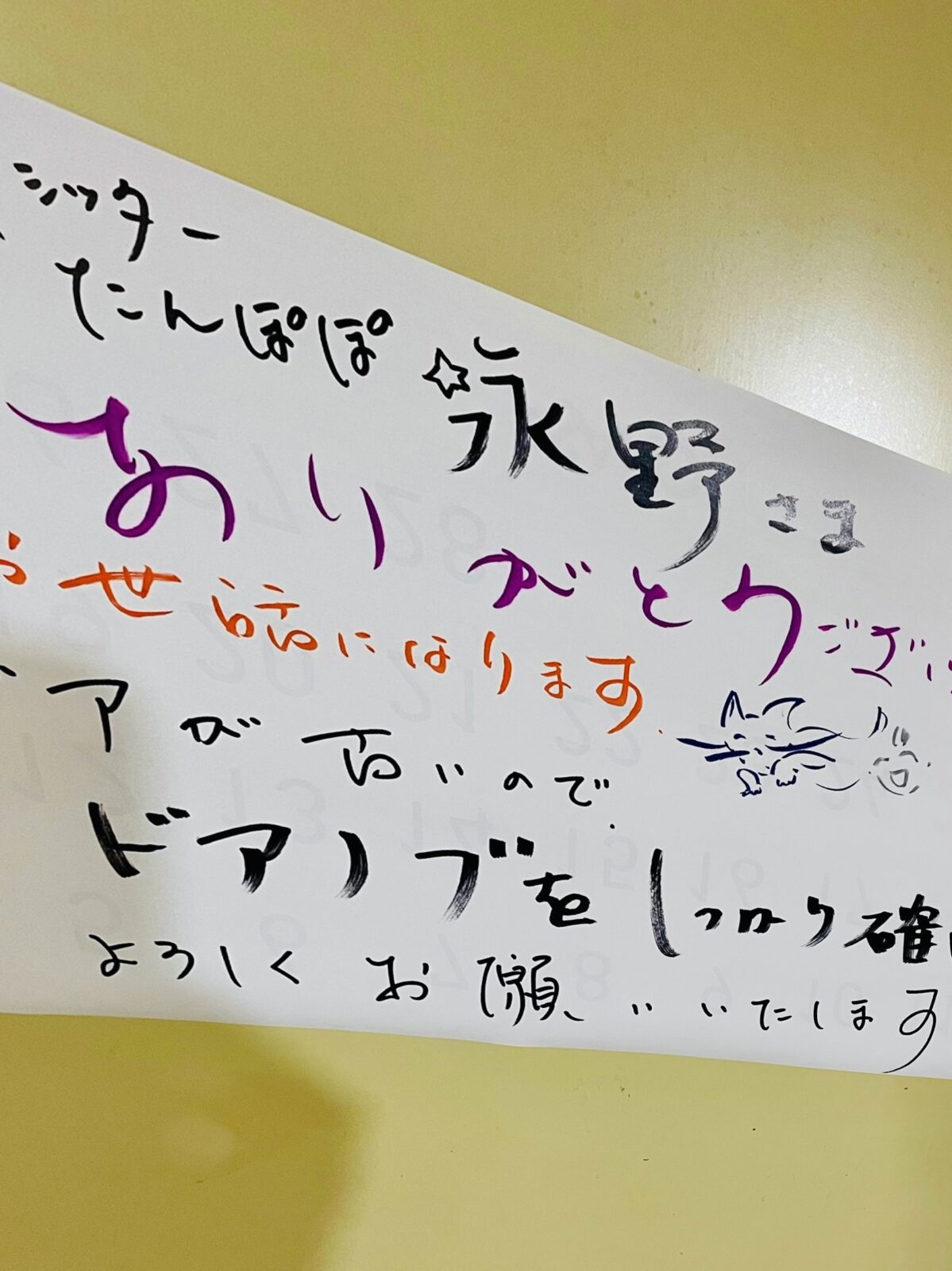 帰り間際、ドアに心温まるメッセージがありました。ハートがじんわりしました。本当にありがとうございます。