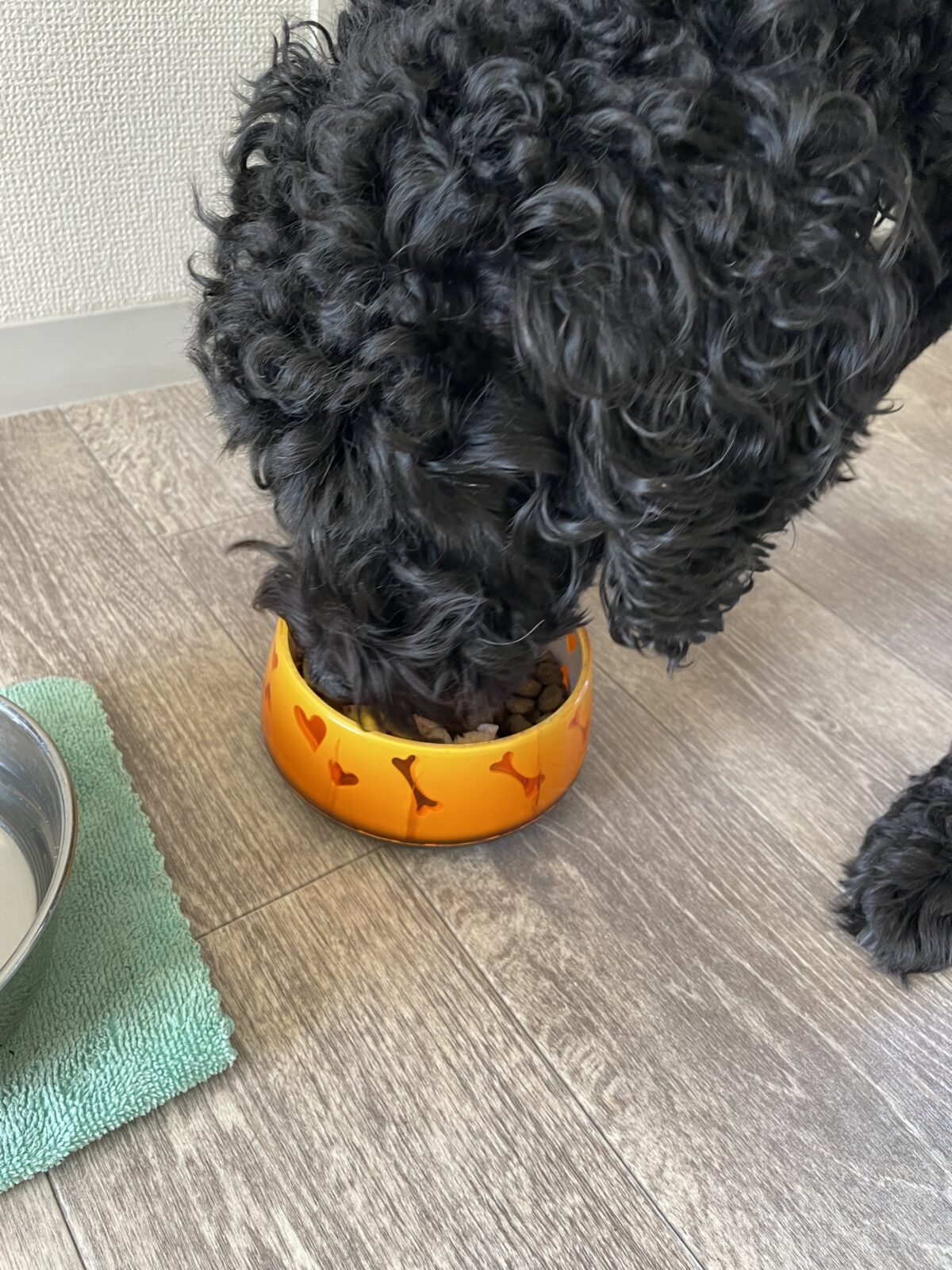 ご飯は、ドライにささみのウエットをトッピングしないと食が進まないみたい。飼い主様はお留守番のアイオンくんのためにちゃんと準備してくださいました。たくさん食べて元気100倍だね、アイオンくん^_^