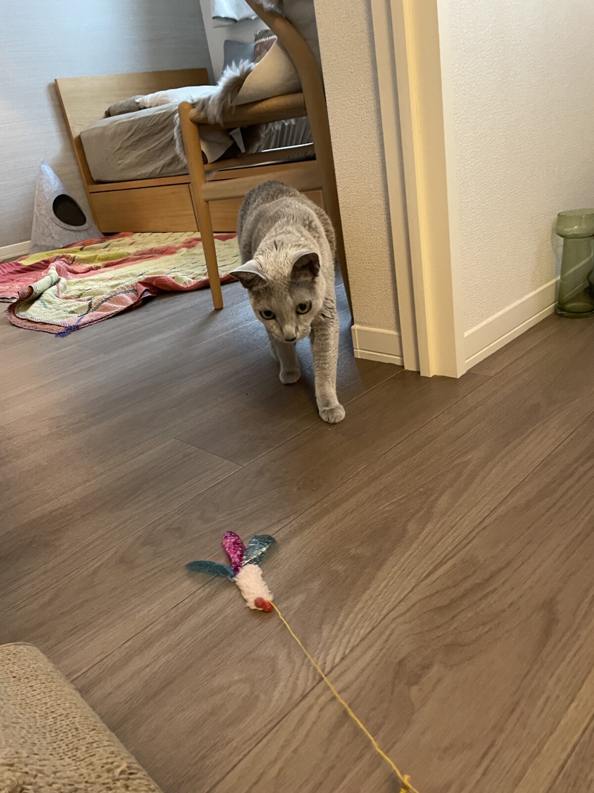 ルナちん、おもちゃ遊びもまだ健在です。ネズミちゃん捕まえて紐をガジガジする遊び方は前回と変わっていません^_^