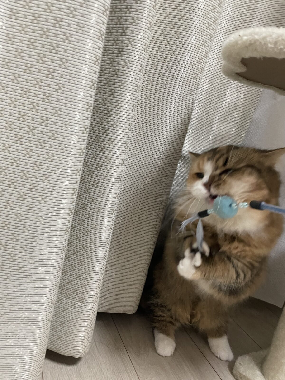 今回が初めてのお留守番でしたが、大好きなおもちゃで一緒に遊んだり、チュールを上手に食べたり、とてもお利口にしてくれました。