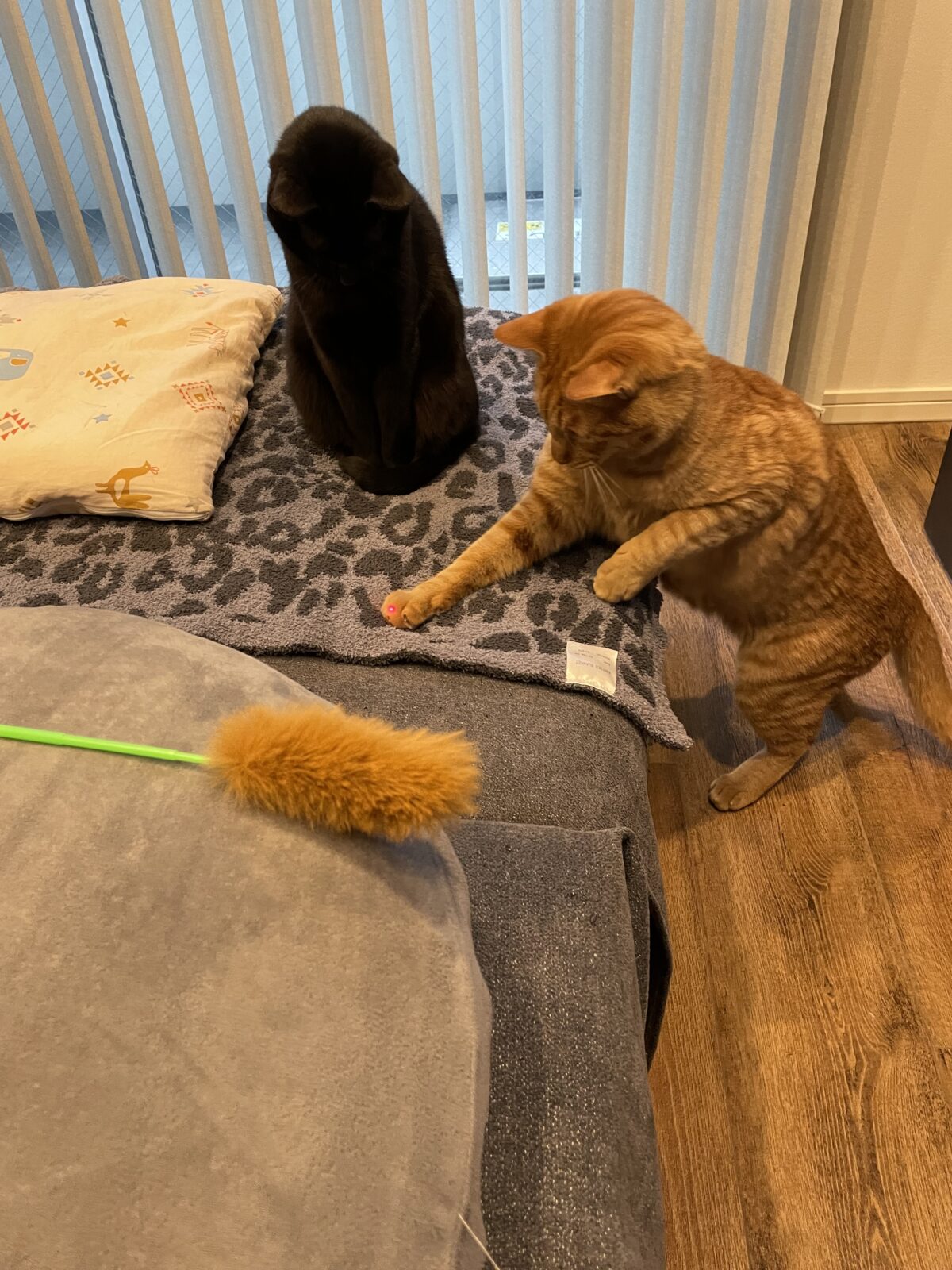 黒猫のヌウちゃんと、チャトラのウニくん。