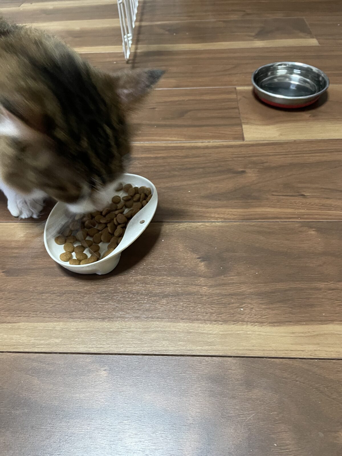ご飯のある場所に手を伸ばすだけで大騒ぎ。
