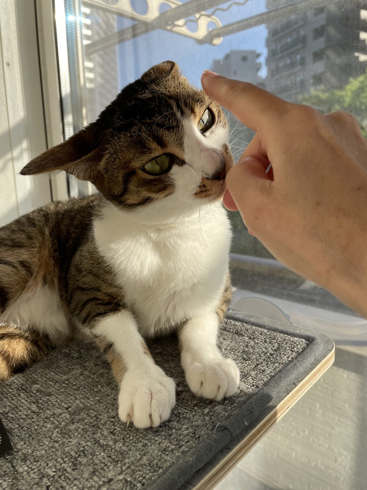 きなこちゃんは日向ぼっこが大好き。いつも窓に設置しいてるベッドでまったりしています。気持ちよさそう^_^