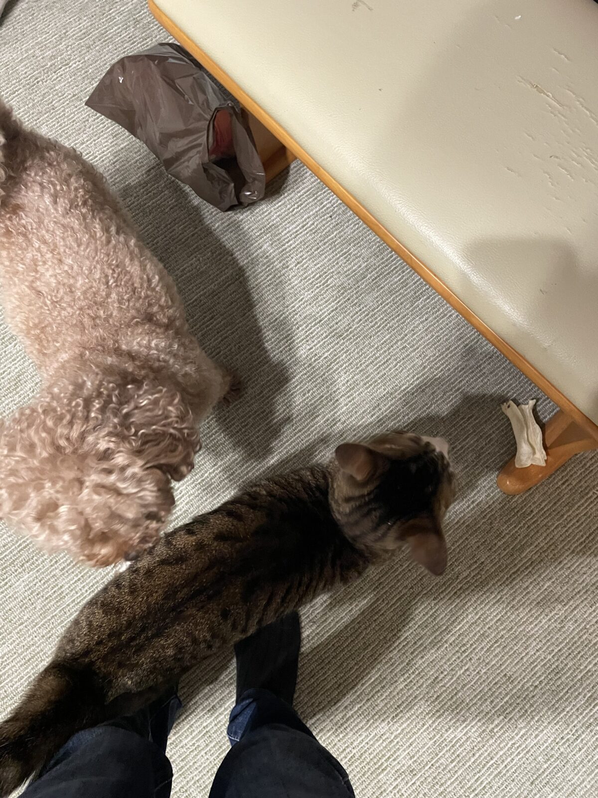 5歳のチワプーちぃくんと、1歳のキジシロきなこちゃん。